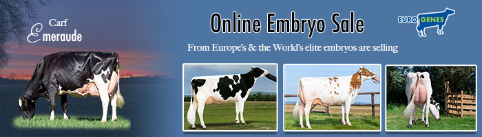 February 13, 2026 A new edition of the Eurogenes Online Embryo Sale is OPEN for BIDDING. Log-in and take a view in the exciting offering with embryos from the hottest sires and greatest families right now! Selling are Female Mountie-Red (+3008 GTPI / +2.53 PTAT) embryos from Golden-Oaks Ambrosia-Red VG-89-NL EX-91-MS 4yr., she is an Altitude-Red granddaughter to Miss Pottsdale Tang-Red EX-94-USA, Eskdale Powerstar *RC (+3128 GTPI / +3.04 PTAT / +9 Conf.) embryos from a Bullseye daughter going back on the proven breeding cow Carf Emeraude EX-91-NL, Female Stantons Chief embryos from the VG-86 2yr. old Haniko daughter Bibian and multiple herdbuilding packages starting at 75 EUR / embryo. Continue reading.. Read More