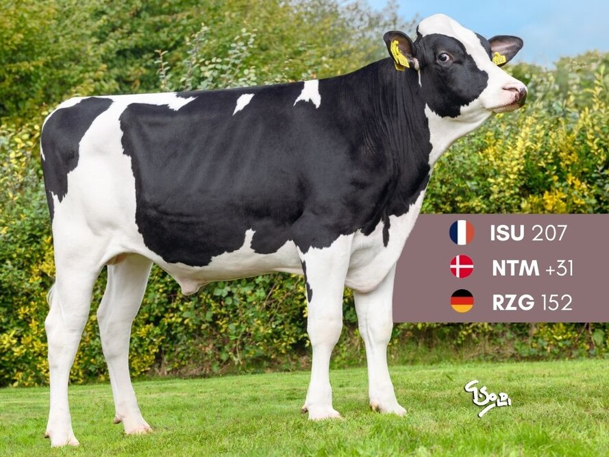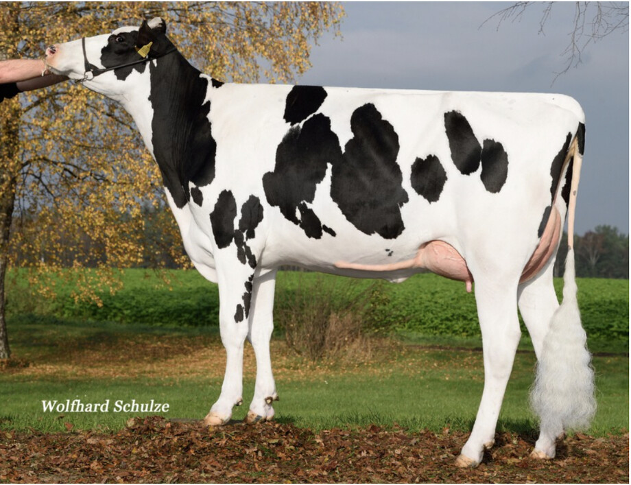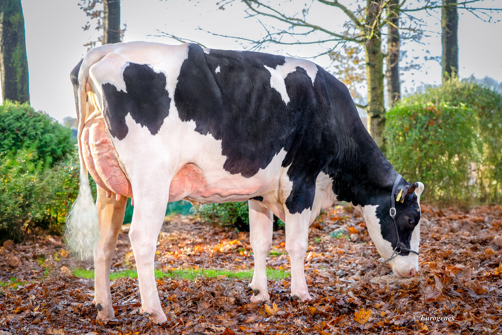 She is a promising Foreman daughter, topseller of the Masterrind Exclusive Sale 2022 and recently pictured and classified, meet Imagine! This Foreman daughter is classified with VG-85-NL 2yr. and is in her 1st lactation projected in 305 days at 10.622kgM with 4.4%F and 3.7%P! She is dam to the +157 RZG / +3224 GTPI / +301 gNVI Real Syn son DG Ike and the +152 RZG / +3244 GTPI / +207 ISU Space son DG Indian. Imagine VG-85 2yr. is from a VG-86-DE Lenovo daughter, followed by Benz daughter Ista VG-88-DE. Ista VG-88 is dam to Ilott P @ Intermizoo and dam to Ronan @ Genes Diffusion. She is from the same family as the 2yr. old Champion Schau der Besten 2017 Seeger's Indiana EX-92-NL and FG Ice, the Res. Intermediate Champion European Show Fribourg 2013!