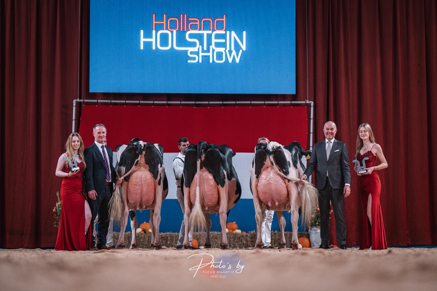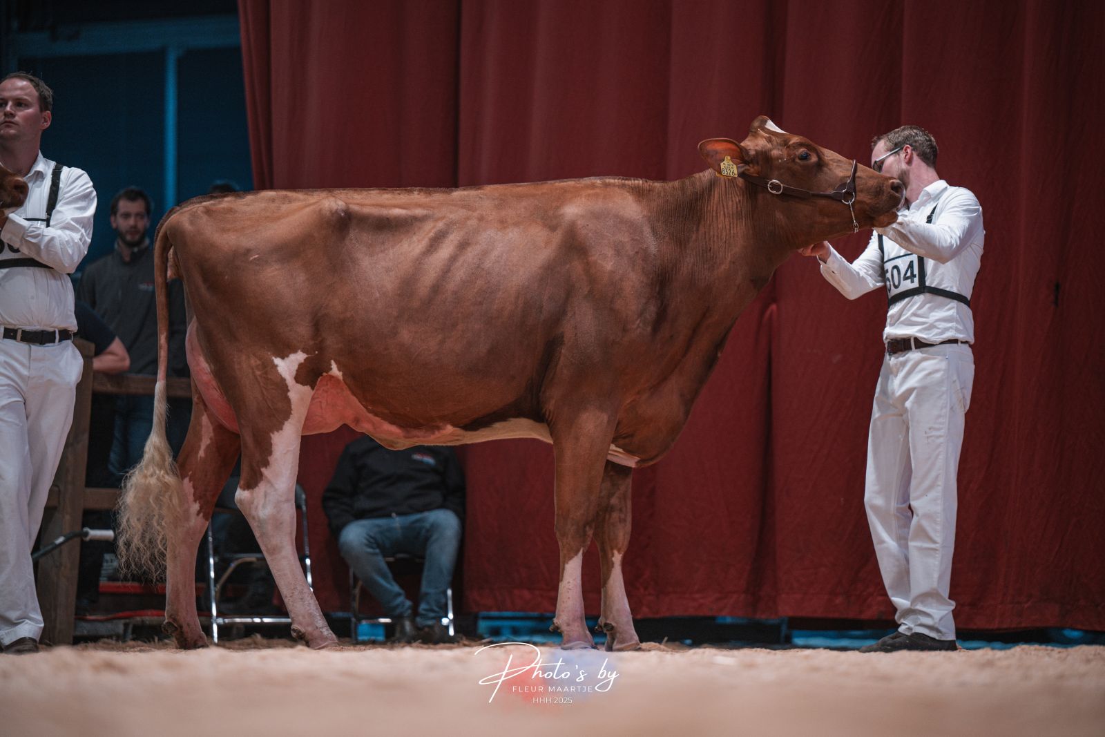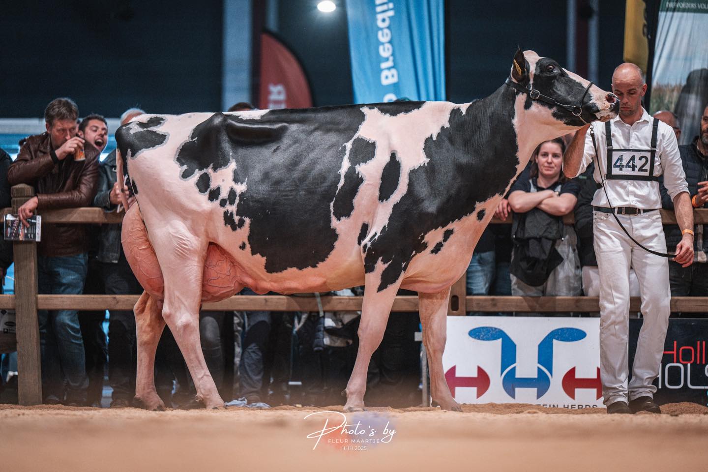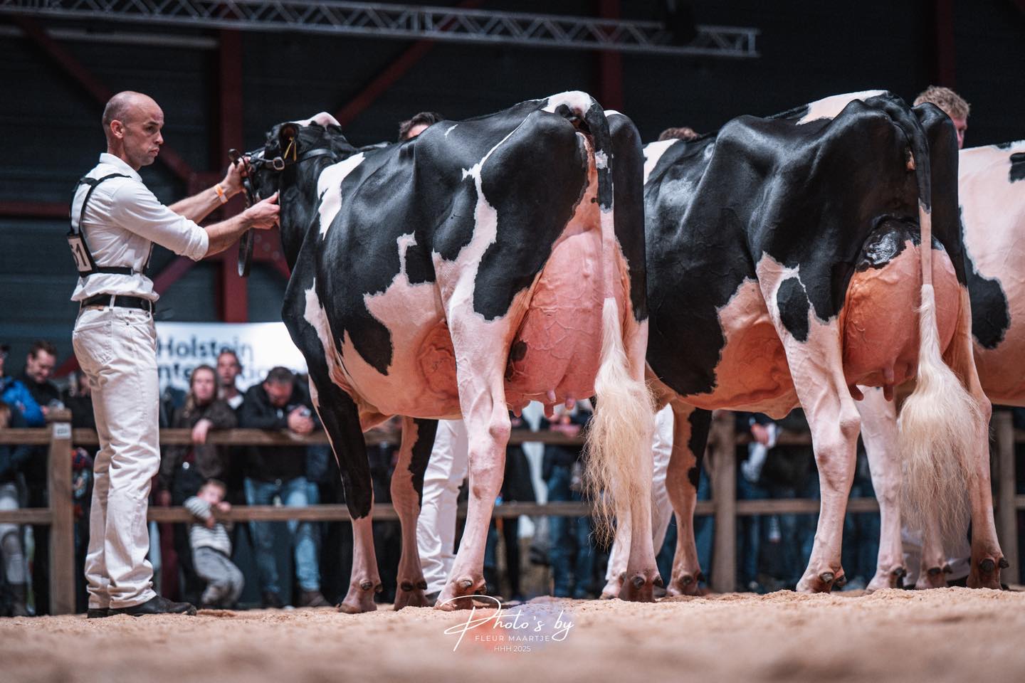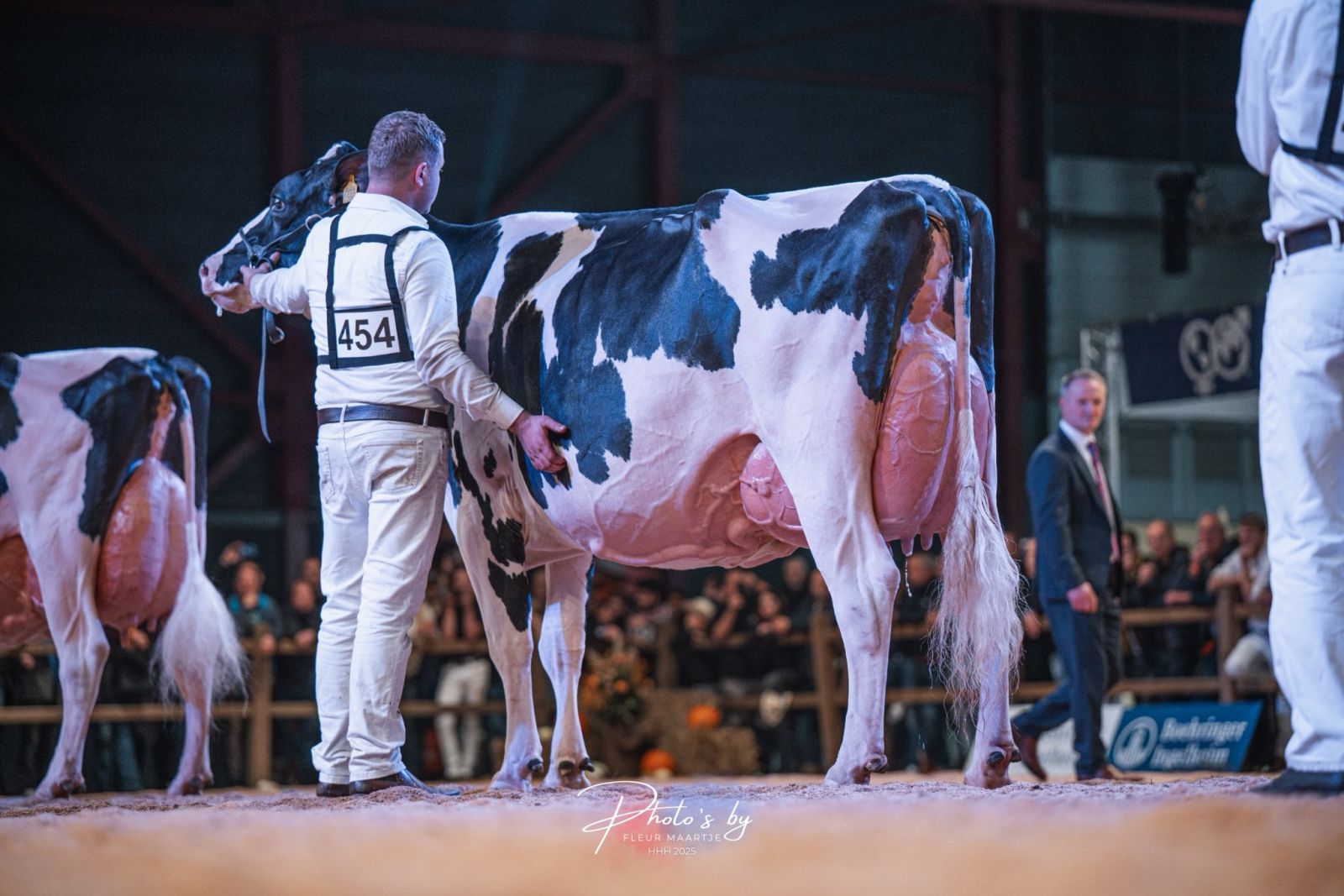 The B&W Mr. Danielle Devour *RC daughter in the Netherlands: Heerenbrink Angelina EX-93-NL EX-95-MS strikes again with winning the Senior Champion and Grand Champion B&W Holland Holstein Show 2025. She was already Grand Champion of the Holland Holstein Show in 2023 and did it again!! Her barnmate Heerenbrink Dolly Rae Jordy EX-91-NL EX-94-MS became R&W Senior Champion and R&W Grand Champion at the show. Great success for Eurogenes member Veenstra Holsteins with winning the youngest class with Intermediate Cows with Delta-Lambda daughter Sanne 43. In the oldest class with Intermediate cows became New Moore A342dina389 2nd. She is sired by the home-bred bull Drouner A342.