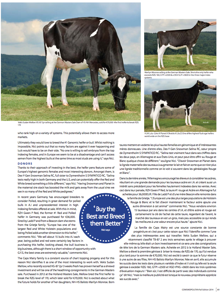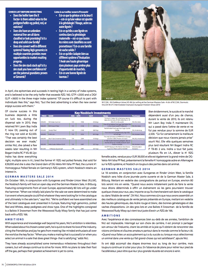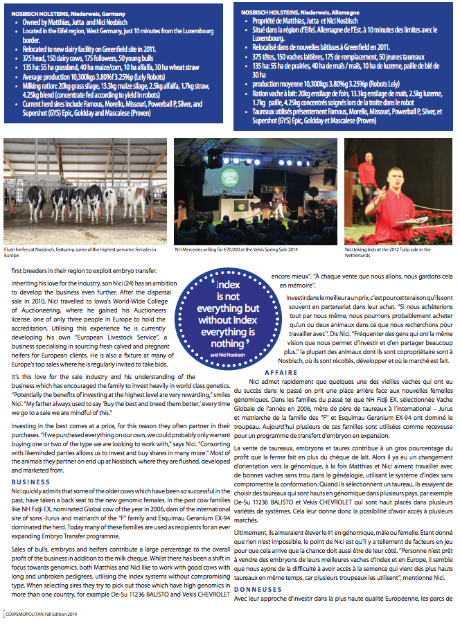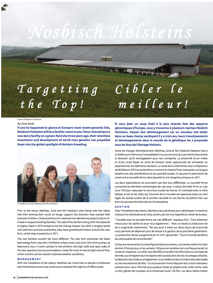 Read further for a very interesting 5 page article about Nosbisch Holsteins out of the latest edition of the Cowsmopolitan. This beautiful farm has a big open day, next week, October the 18th with the German Masters Sale in the evening in Bitburg. Make your travelplans now for this sale. Click here for the article and more travel information.