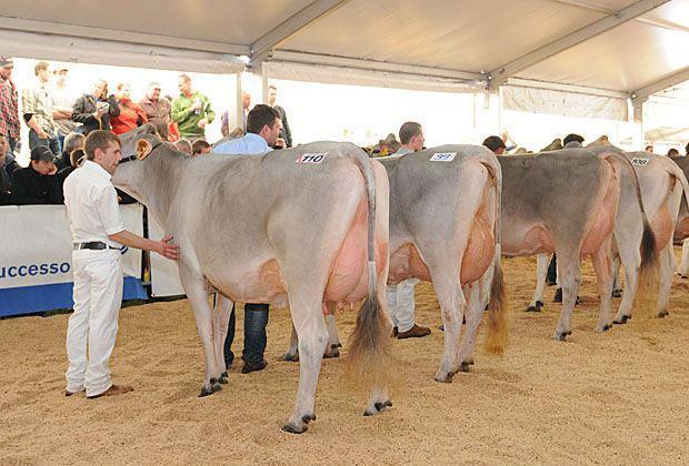 Baltschanahof Holsteins had a overwhelming Brown Swiss Show last weekend. Baltschanahof Agio Celia VG-86-SW 2yr. won her class and was crowned Reserve Champion & Best Udder later this day at the Eliteschau 2013. Celia is straight out of Grand Champion Camelot Cindy EX-94-SW EX-98-MS who is also a very popular bull dam for Swiss Genetics. Many of Cindy her embryos have been sold through the Eurogenes Online Embryo Sale. Baltschanahof Agio Celia is the 7th generation VG or EX backed by 6 generations of Excellent udders in a row!!