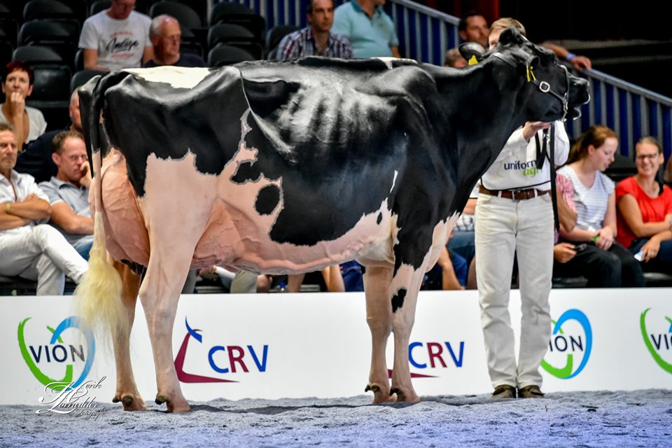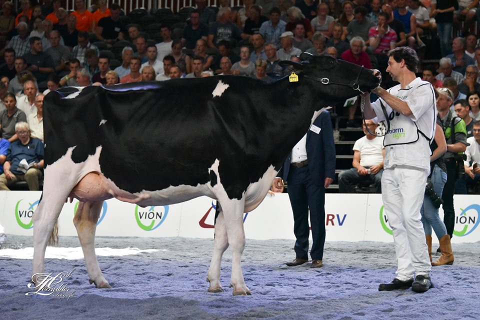 Bons-Holsteins has written history with winning for the 3rd time in a row the Grand Champion of the National NRM Show!! This year their Seaver daughter Bons-Holsteins Ella 192 EX-93-NL won her class, became Senior Champion and later on Grand Champion of the show. The Res. Senior Champion went to Drakkar Bulona, a French Lotta-Hill Shottle 41 daughter in co-ownership of Hullcrest Holsteins & Heerenbrink Holsteins. The Int. Champion was won by Atwood daughter Wiersma 5317. The Res. Int. Champion was again for Bons-Holsteins with their European participant Bons-Holsteins Dikkie 193. Giessen Charity 138 extended her 2yr. Old Champion of the HHH-Show 2018 with winning again at this years NRM-Show. For the third time this day Bons-Holsteins won again with their promising Gold Chip daughter Bons-Holsteins Aaltje 149. She won the Res. 2yr. Old Champion of the B&W Show.