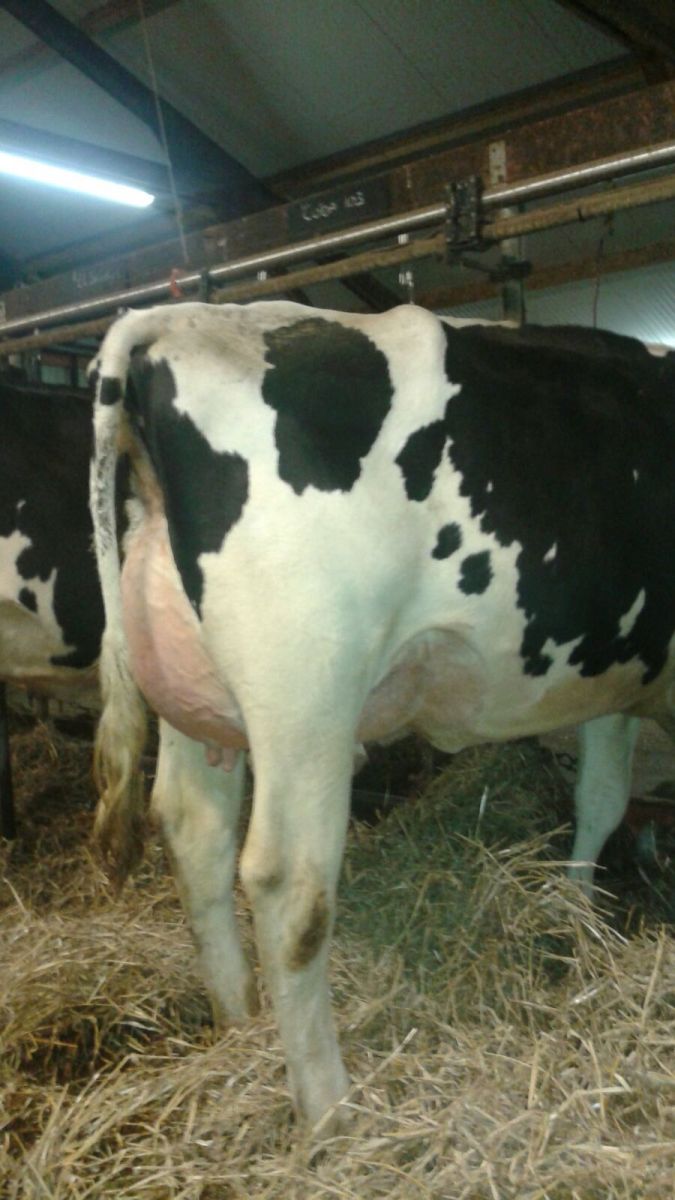 One of the greatest 2yr. olds ever calved in the barn of Vliek Holsteins: DG Christa! Vliek Holsteins purchased her in the Vekis Spring Sale '14 and goes back through a very nice alternative line on the Larcrest Cosmopolitan cow family. Her interesting sire stack: Galaxy x VG-87 2yr. Beacon x VG-86 2yr. Ramos x Larcrest Oside Champagne EX-90-USA! Christa is a full sister to Gandhi at the Vost and Gustavo at the RBB, both Top 10 RZG Galaxy sons in Germany. Click further for some barn snapshots of DG Christa.