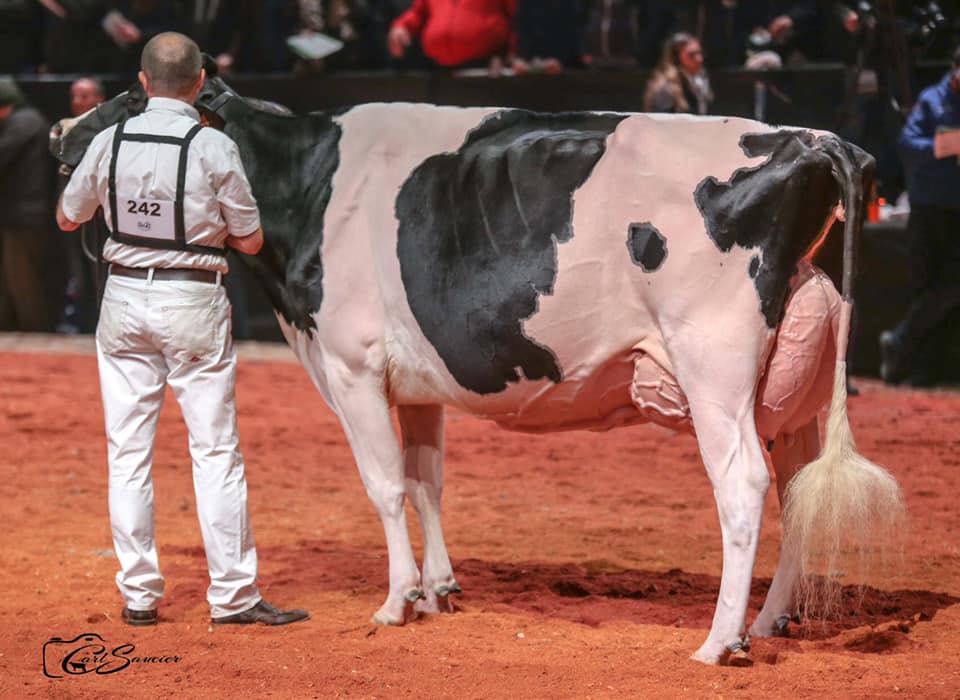 The many favourites show cow Du Bon Vent Inkapi recently raised her total score to EX-95 in Italy!! This phenomenal Italian show cow with French roots has already a big impressive victory list with winning: Res. Senior Champion & HM. Grand Champion Montichiari Show '19, 2nd place class 9 European Show Libramont 2019, 2nd place Swiss Expo '19, Res. Grand Champion Swiss Expo '17, Int. Champion & BU Swiss Expo '16, HM. Senior Champion Cremona '18, Intermediate Champion European Open Show Cremona '16 & Reserve 2yr. Old Champion & Best Udder Space '15. Her daughters are already in her footsteps with Bel Bag2 Solomon Bella making a second place in the youngest heifer class at the Swiss Expo 2019.