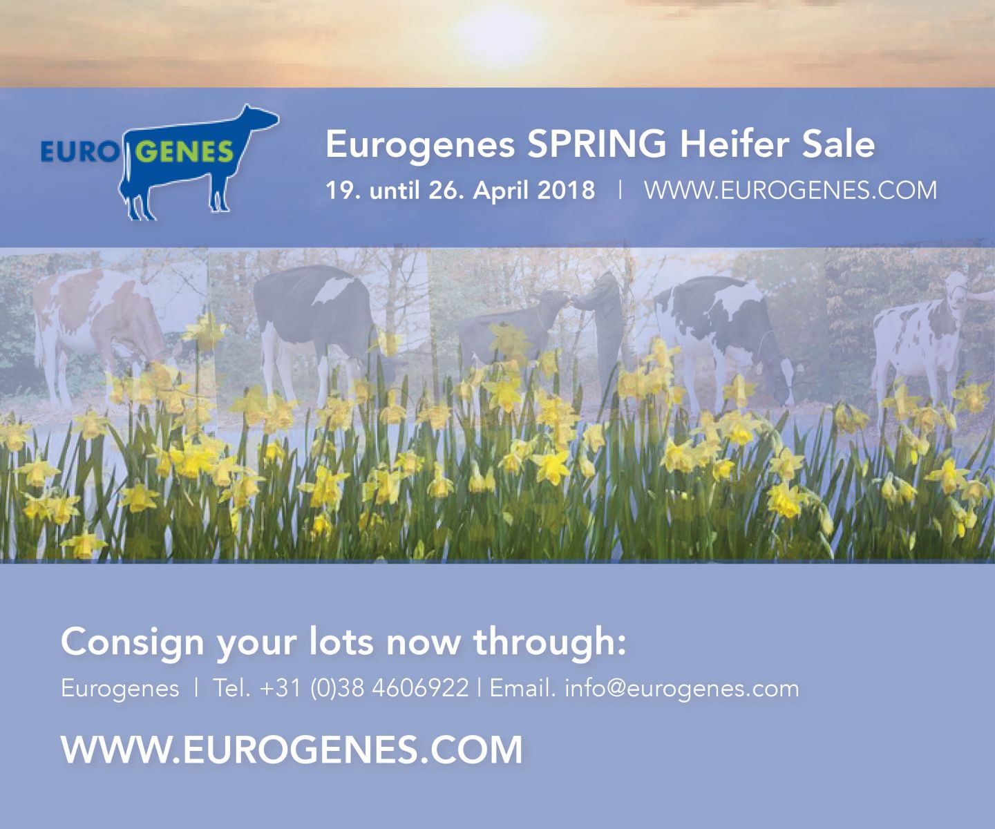 The Eurogenes Spring Heifer Sale will be held from 19. until 26. April 2018 - consign your lots for this sale now through the organisation. Click further for more information.