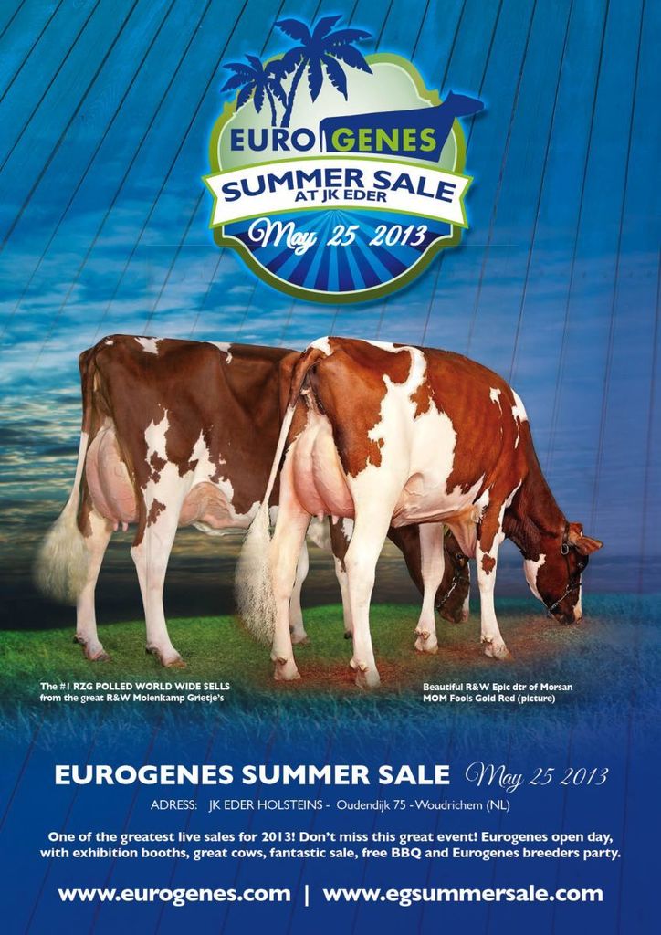 May the 25th will be the day of one of the greatest sales in Europe for 2013, The Eurogenes Summer Sale live at JK Eder Holsteins in the Netherlands. These weeks we will publish the first consignments on the website. Today, we will let you know about 2 fantastic RED heifers, under which the #1 RZG Polled heifer in the World which sells....