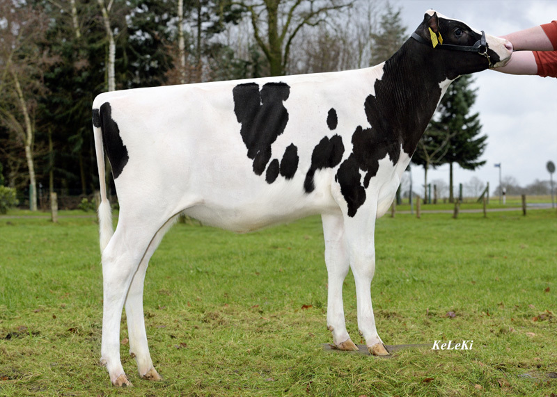 Whiteclass is a very exciting new addition which Broekhuis Vee purchased recently with Flevo Genetics. She carries a special pedigree with Molotov (s. Mogul) as her sire out of the deep Wilma cow family from Welcome Stock, USA. Whiteclass combines a great GTPI & DGV-LPI of +2453 & +3199 (#1 GTPI & GLPI Molotov World Wide) and a huge RZG of +158, what makes her also one of the highest heifers for RZG in the breed!!
