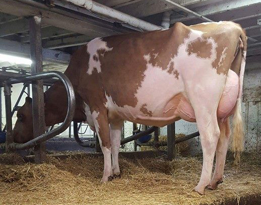 At GAEC Wilt are some exclusive ALTITUDE-RED (not available in Europe) heifer calves born!! They are imported as an embryo from the United States straight out the best of the Luck-E Holsteins herd!! Their first ALTITUDE-RED heifer calf is Luck-E Alix Red a directly daughter to Luck-E McGucci Afro-Red EX-92-USA. Afro is the dam to the intriguing sires Luck-E ARTISAN-RED & Luck-E ARISTOCRAT-RED. She is also the sister to the heavily used R&W show sire: Luck-E AWESOME-RED and a daughter of one of the best Advent-Red daughters in the WORLD: Luck-E Advent Asia *RC EX-94-USA. From this special R&W heifer calf her B&W King Doc sisters are testing >4.6 PTAT!! Unlimited potential in this amazing pedigree! The other Red and White ALTITUDE-RED heifer calf born at Ferme Wilt is Luck-E Jess Red a daughter of Luck-E Awesome Jacuzzi-Red P EX-92-USA backed by 8 generations EXCELLENT dams. This EX-92 Awesome-Red show cow was 1st in her class at the All-American R&W Show 2019 this year and was the second topseller for $30,000 for in the Best of Luck-E Sale 2019! Both heifers are in combined ownership with D. Schwartz.
