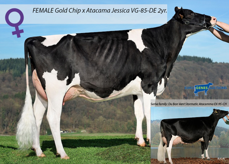 Lot. #7: FEMALE embryos: #3 GOLD CHIP x AGH Du Bon Vent Atacama Jessica VG-85-DE 2yr.