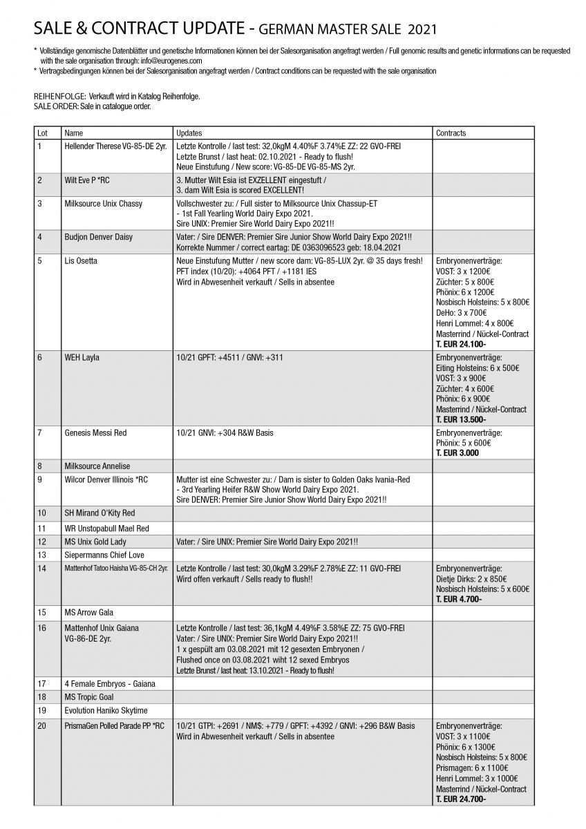 The FINAL SALE UPDATE of the German Masters Sale is now ONLINE available!! This SALE UPDATE also includes the embryo contracts of the great lots selling in the German Masters Sale 'LIVE SALE'. Click further to view the complete sale update.