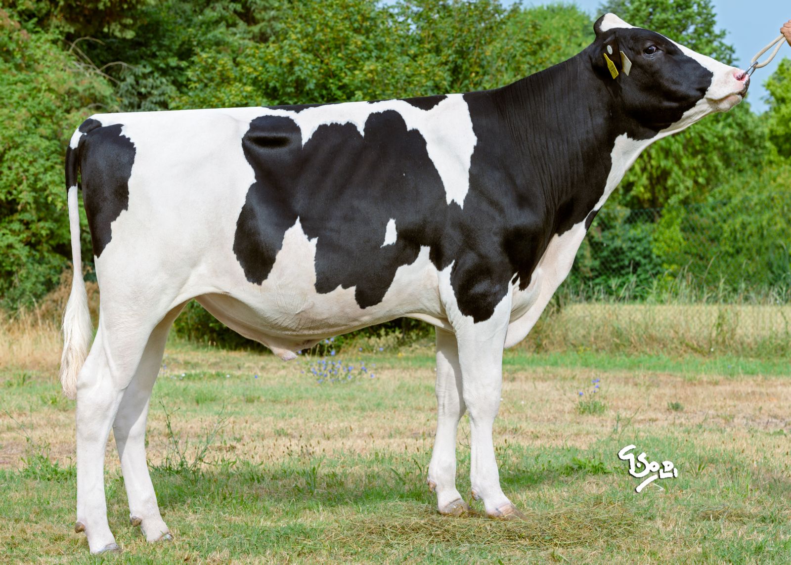 DG Dr. No delivers what he promised! The first daughters of DG Dr. No are fresh in the Netherlands and are looking promising! Recently we received a picture of a fresh Dr. No daughter in the Netherlands. DG Dr. No @ AI-Total is sired by Genosource Captain from the EX-90 Crimson daughter, Gen Durkje EX-90-NL from the Al-Lew Monterey Ashley EX-95-USA family, has a complete GTPI index and is one of the highest B&W Genomic gNVI sires in the Netherlands at +329 gNVI! He guarantees in his US-index +3173 GTPI with +1414kgM / +0.07%F / +0.01%P / +870 NM$ / 2.79 SCS / -0.46 Stature.