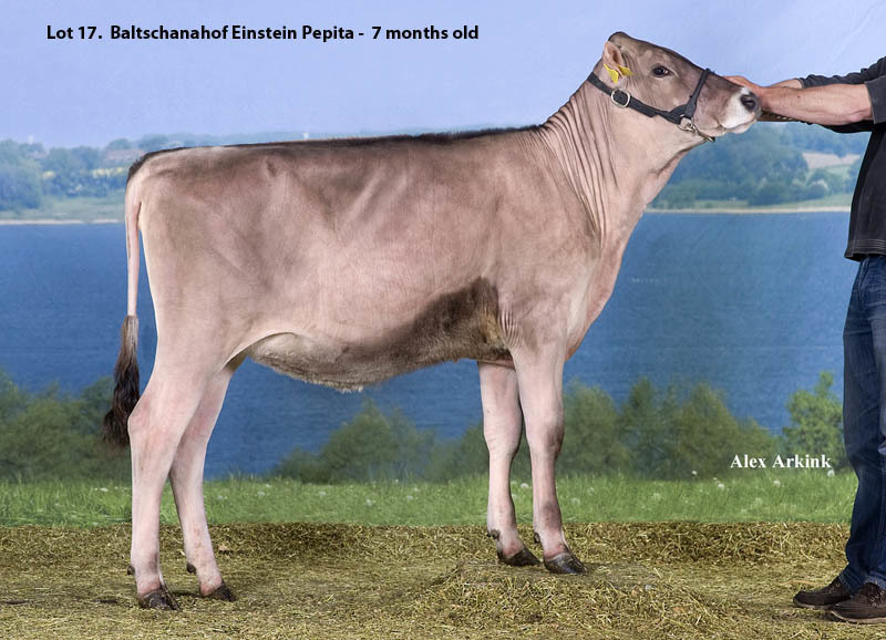 Beautiful Brown Swiss heifer. Grand dtr of Pisa EX-94-SW with an EX-95 udder and 4% protein!!