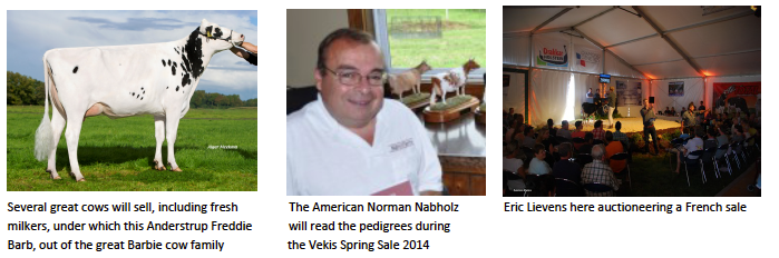Vekis Genetics started their breeding activities with great passion around 5 years ago, nowadays their genetics are selling world wide through bulls like Vekis Chevrolet. Eurogenes has a well known name as manager of international sales. Sales like the Eurogenes Summer Sale, Holland Masters Sale, Paris Dairy Sale and Spanish Masters Sale are some examples of international elite sale organized by Eurogenes. Over 150 top Holstein breeding farms from Europe are members from Europe, the very best from these farms are selling on March the 28th in Nunspeet, the Netherlands. There will be consignments from Denmark, Germany, the UK, France and more!