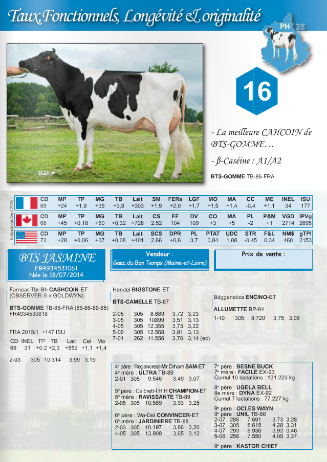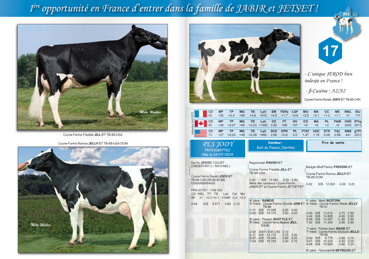 The Vente Orne 2015 will be held on Wednesday the 27th of May. Several Eurogenes members from France will offer their best genetics in this sale like a +187 ISU Diamond daughter going back on the Royal- & Madison Grand Champion RF Goldwyn Hailey EX-97, a >2200 GTPI Jerod dtr from Coyne-Farms Ravish Jody, a red Debutant dtr from DKR Sally of the Splendor cow family and more!