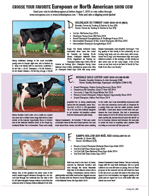 The contests out of the Hotspots Autumn 2015 edition are online. Choose now for your Favorite Show Cow and for your Favorite Epic daughter!