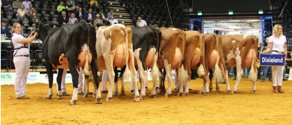 Several progenygroups were shown at the German National Show the DHV Show in Oldenburg last week. Including progenygroups of the bulls bred by Eurogenes members, Dixieland which bred by RZH Holsteins and Dertour Red bred by Beeze Holsteins from the Netherlands. Click further to see pictures of these groups!
