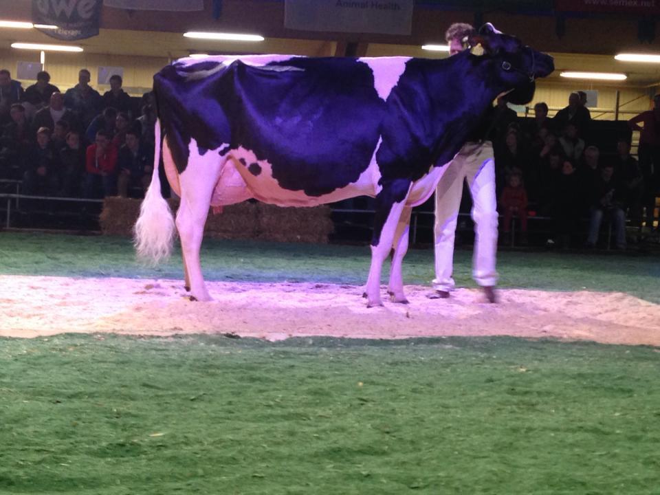 Last Saturday the Night of the Holsteins has been held in Libramont, Belgium, with a large crowd, a great atmosphere and high quality level of beautiful Holstein cows. Bons Holsteins Koba 191 (s. Jasper) from Bons Holsteins, the Netherlands captured the Senior Championship title after she was just 14 days fresh! Later this evening she also won Reserve Grand Champion! Her full sister Bons Holsteins Koba 195 won her class and won HM Intermediate Champion. Bons Holsteins took the 2nd place in the overall ranking of best breeder of the Show.