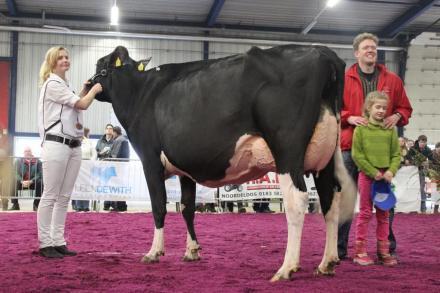 Bons-Holsteins Koba 191 EX-90-NL captured the Supreme Championship at the Wintershow in Noordeloos! This Jasper-daughter from the Koba Cow family is the full sister to the Jr. 2-Yr. Old Champion of the National HHH Show 2011! Also Schep Holsteins had a fantastic show. They captured the Jr. 2-Yr. Old Championship with Goldwyn-daughter HBC Sheila 6 VG-88-NL 2yr.