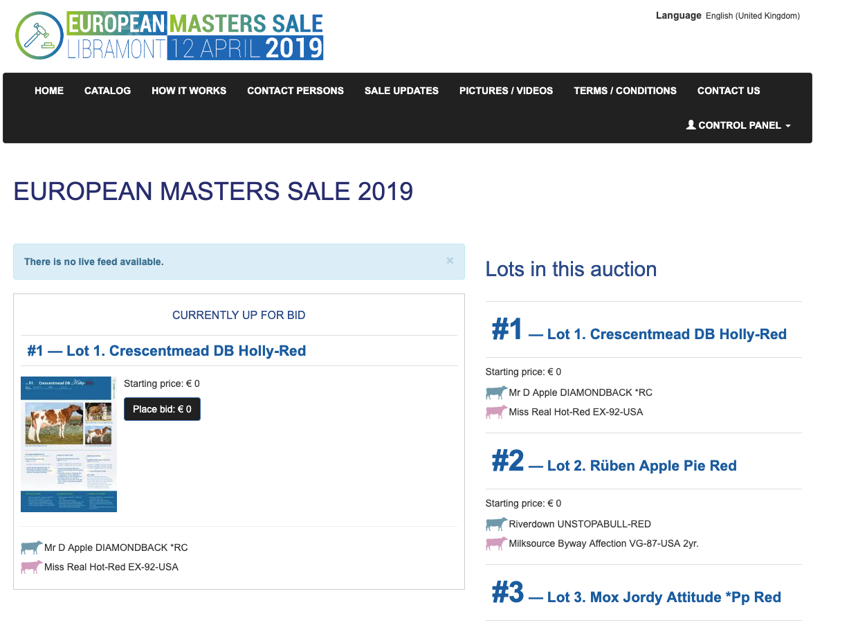 Tonight is the night of one of the greatest sales in Europe of the year: the EUROPEAN MASTERS SALE! The sale will start on 19:30 PM in the Libramont show arena. If you are not able to make it to the sale, you can view the sale online and bid online through www.livedairyauction.com - Watch online and place your bids on some of the best in the breed, including direct dtrs of Blexy, Apple, Subliminale, Katrysha, Ashley, Galys Vray and others! Click further for more information on how to follow the sale online.