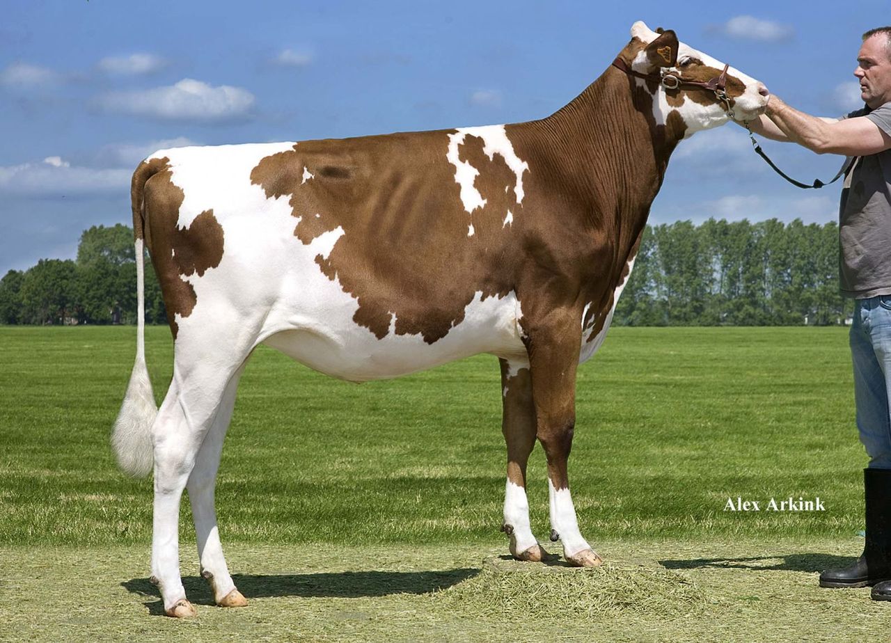 KHW-I Aika Baxter has raised her type score to VG-89-CAN 5yr., the maximum score for a 2nd calf cow in Canada. Baxter Aiko her mother, Goldwyn Aiko is the maternal sister to the World Dairy Expo R&W Grand Champion KHW Regiment Apple! Also Baxter Aiko is the mother to the #1 *RC RZG Bull, Aikman *RC and the maternal sister to Applejax *RC, Fraiko *RC en Perfect Aiko *RC. In Europe she has interesting offspring through her Detox dtr BTS Avea Red, she was 1st Jr. Heifer at the Summershow Beilen and is the #8 R&W heifer in Europe with GTPI +2181 and over 3 points for type. Her maternal sister De Jonge Aiko *RC VG-86-NL 2yr. is a successful donor at Flevo Genetics and the #1 Sahara dtr in the World.