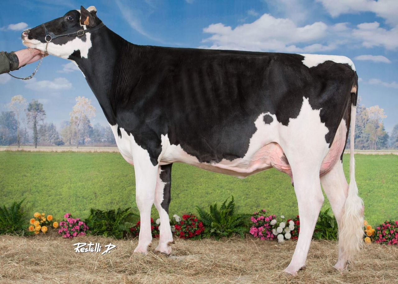 Huyben DG Sanch Carol VG-87-FR 2yr. her McCutchen & sexed Atwood embryos are selling! Carol was preselected for the European Championships in Fribourg and is maternal sister to R-Z Baxter Caramel VG-89-CAN 2yr. who sold for $100.000. Her mother Ralma Goldwyn Carmel EX-92-USA is the full sister to Chairman @ Alta Genetics and Gold Crown & Coach @ Select Sires. Carol is one of the greatest daughters in Europe straight from Carmel and also the only Sanchez dtr in Europe from Carmel!