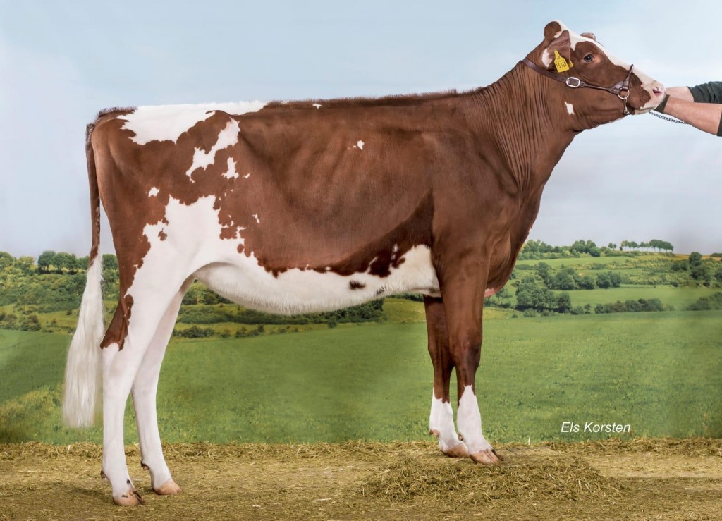 Recently we received a new photo of the fabulous offspring from the Meggilee's: ViG My Love Red. A showy Redneck grand daughter of the famous show cow RH Maibrit EX-92-DE (s. Joyboy). Maibrit was 2nd in her section at the National German Show (DHV) '17 and produces >80.000kgM in her lifetime. My Love Red herself was also already successful shown at the Fokveedag Putten '19 with a third place in her section. This is the same family as one of the most famous and legandary show cows in Germany: RH Talent Maxima EX-94-DE EX-95-MS. Maxima her daughter FG Madame EX-92-DE was 2-Yr Old Champion Schau der Besten 2015 & Grand Champion Schau der Besten 2017. My Love Red is straight out 9 generations Very Good or EXCELLENT dams and is a name to remember for the future!