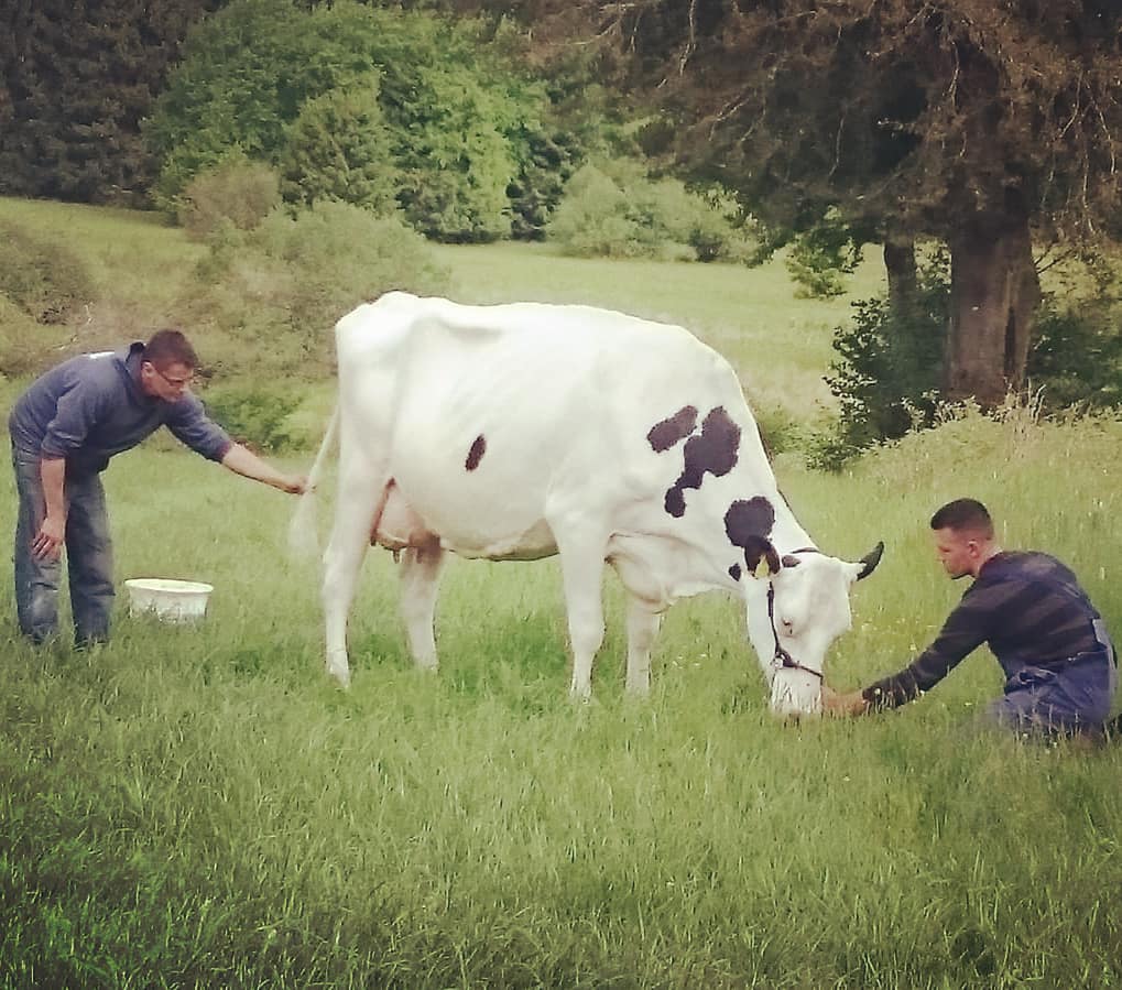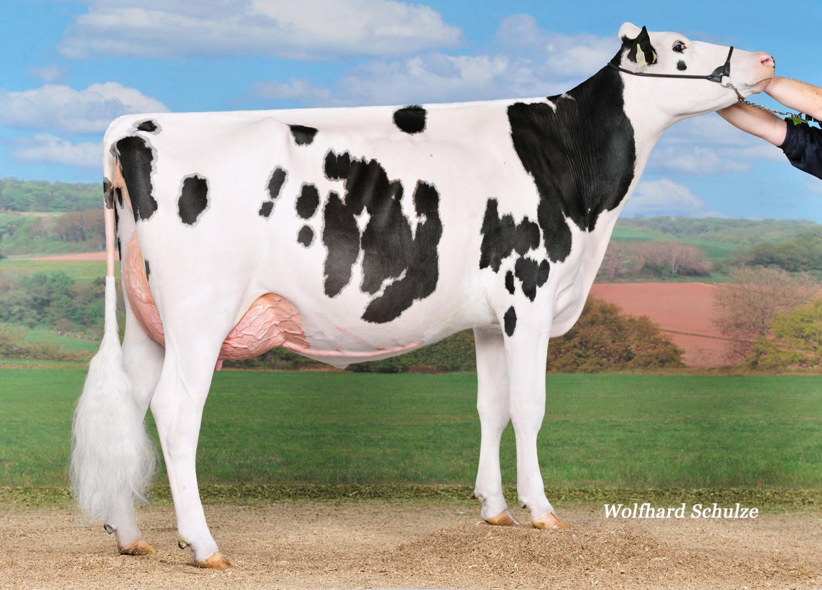 GRH Darling EX-90-DE, the dam to the populair R&W bull STERLING-RED @ RUW is pictured again in her 4th lactation. She is from the same family as the Jacoby dtr KNS Dina @ Bolleholster Holsteins and traces back to KNS Dorfgirl EX-93-DE. This family brought several sons for A.I. like Stadel & Tabelau-Red and is also very successful at the coloured shavings. The sister to Dina's grand dam KNS Dornröschen (s. Dempsey) won the 2-Yr Old Champion at the Masterrind Konvent 2014. Dornröschen her Atwood daughter, OHB Dream, continued this success with winning this years Res. 2-Yr Old Champion at the Schau der Besten. KNS Dina could be the next in this incredible line-up, she comes straight out 3 EXCELLENT dams and has a huge sire stack: Jacoby x Goldwyn x Lee!