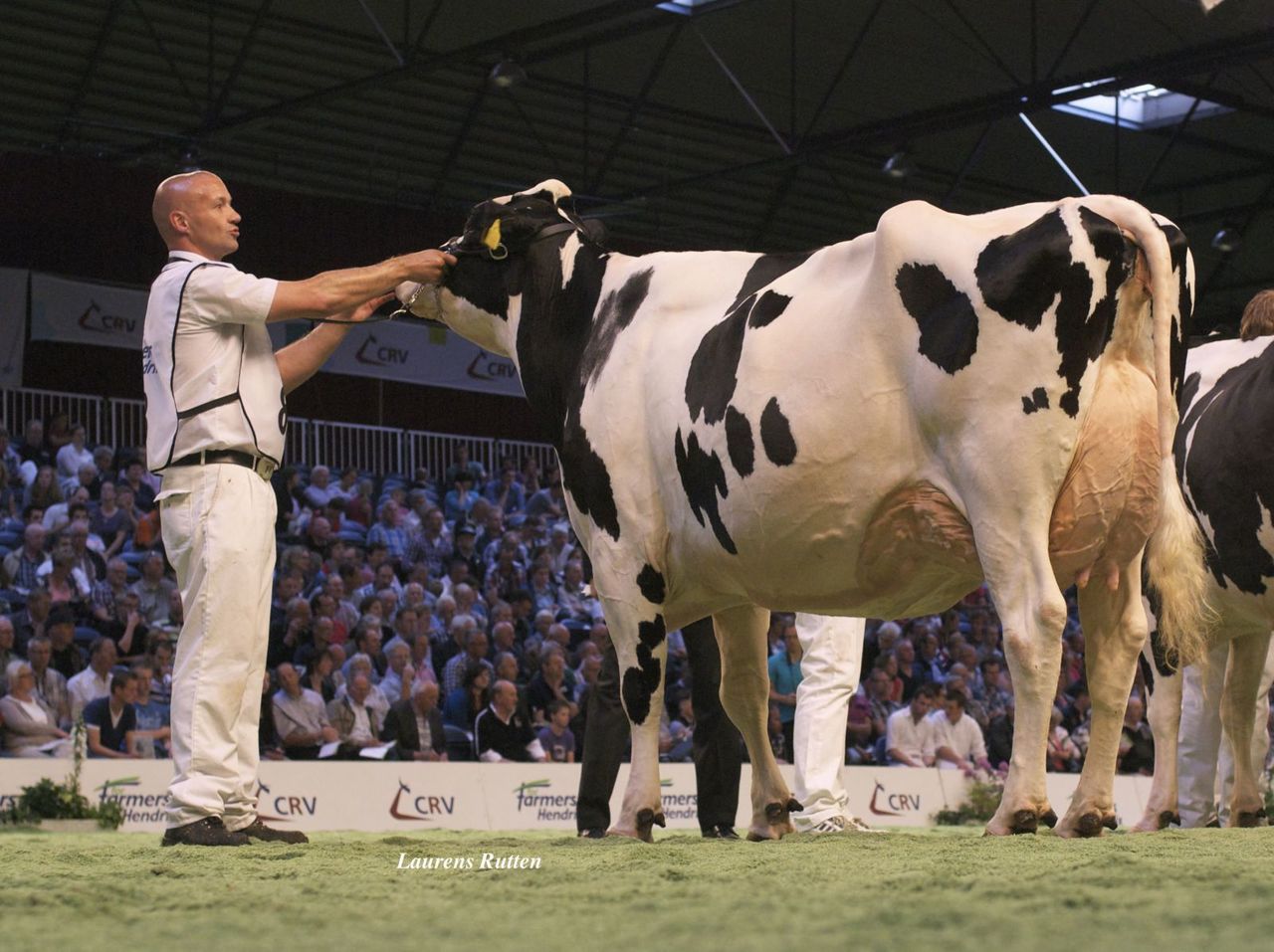 The great show cow, Spirit Precilla EX-92-NL from Giessen Holsteins recently has been pictured at the Dutch National NRM Show. Here she became 3rd in the Senior Class. Until today, Precilla has been very successful in every lactation. Last year she was crowned Grand Champion at the CRV Expo while she was Intermediate Champion at the NRM Show in 2010. In 2008 she was crowned as 2-Yr. Old Champion at the WZM Show in Oldenburg, Germany. Out of Spirit Precilla her fancy Goldwyn daughter exclusive BROKAW embryos are selling on the Eurogenes Online Embryo Sale, lot 18.