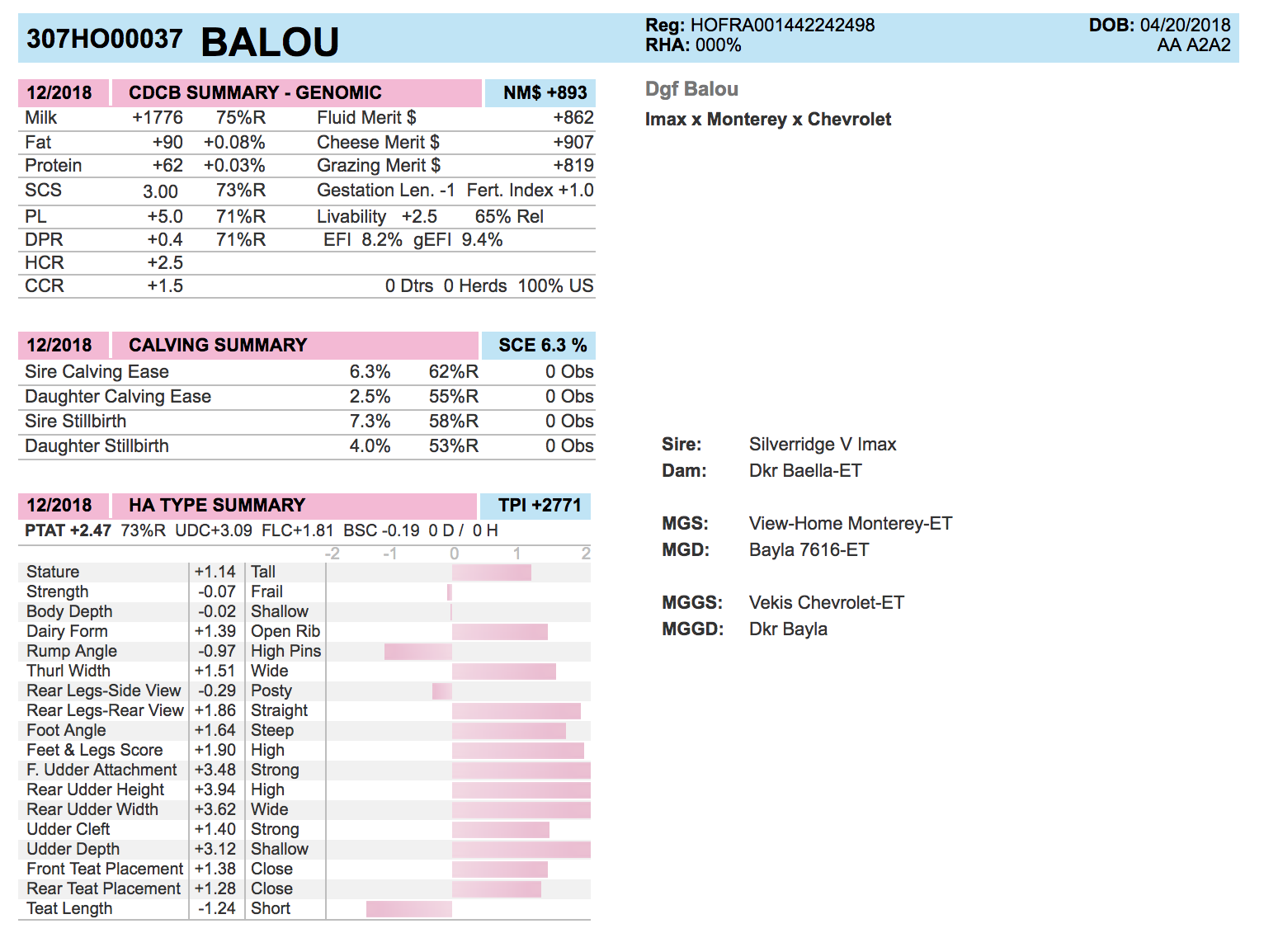 - BALOU: A2A2/ +3.09 UDC/ 6.3% SCE/ +90 Fat & >1700 Milk! (12/18)
