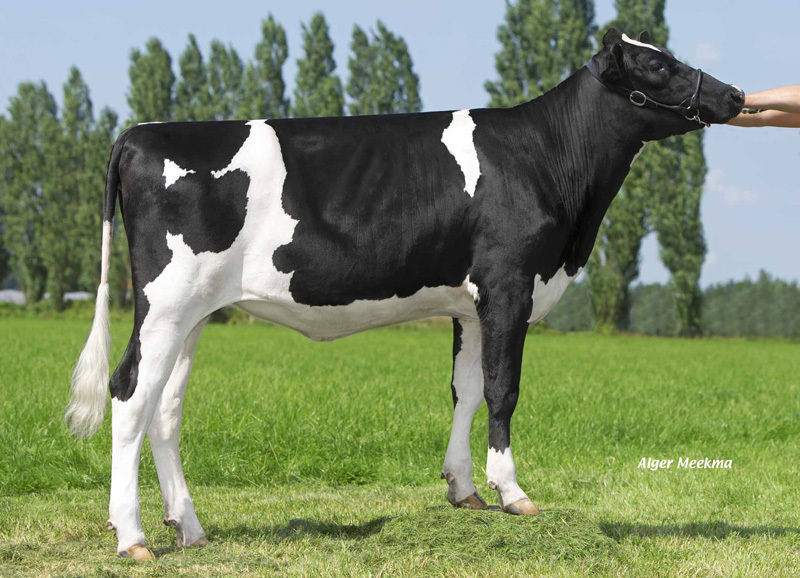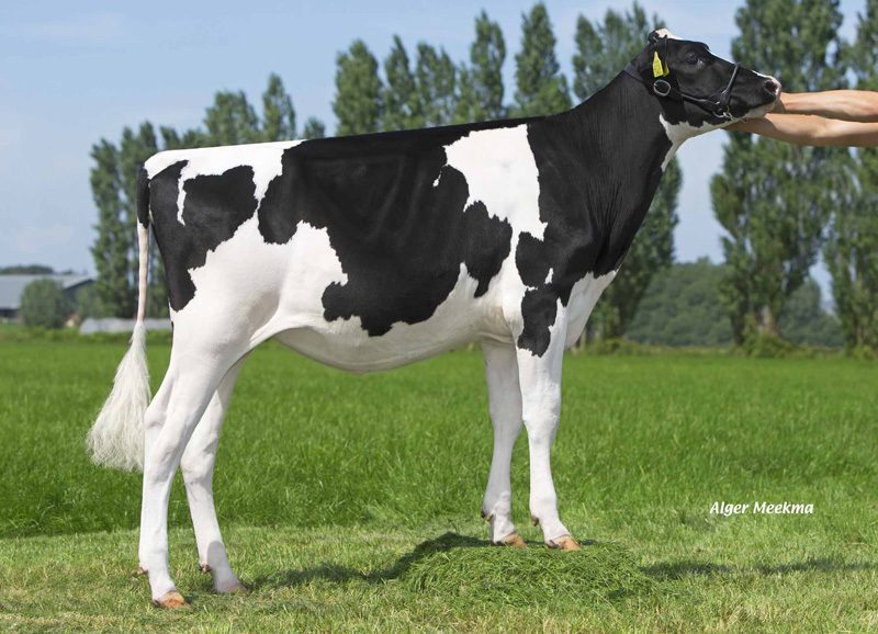 Dam is one of the first daughters of Man-O-Man in milk in Europe