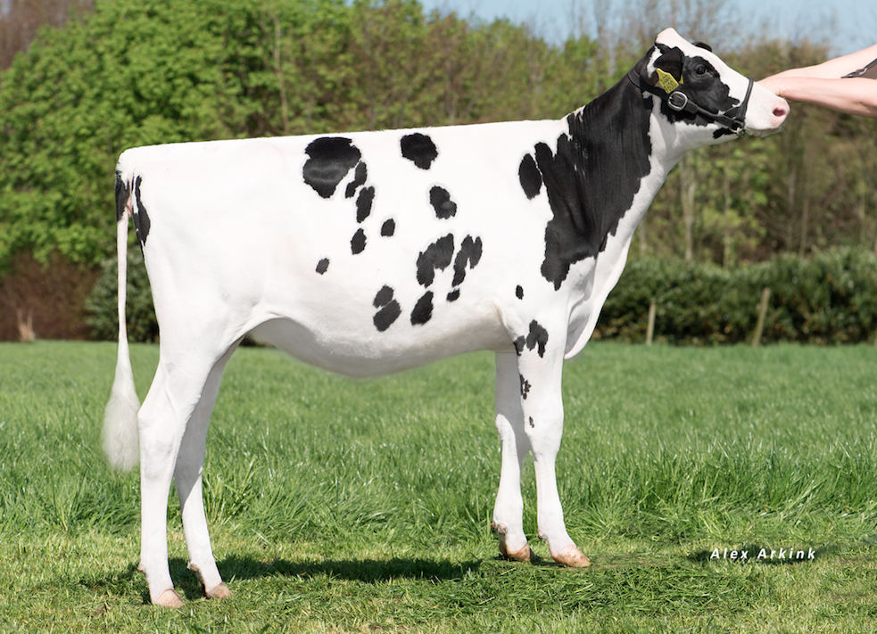 There is a straight daughter out of Esmeralda during the Online Spring Sale that is going on right now! The widely known Doorman daughter out of Carf Emeraude EX-91-NL, is well known in the show circuit and impressed everybody. She got the MAX score of VG-89-NL as a 3yr old. Her September Beemer daughter with 2.64 PTAT sells and there is a new picture of her online. Show, Show and more Show in this Pedigree!