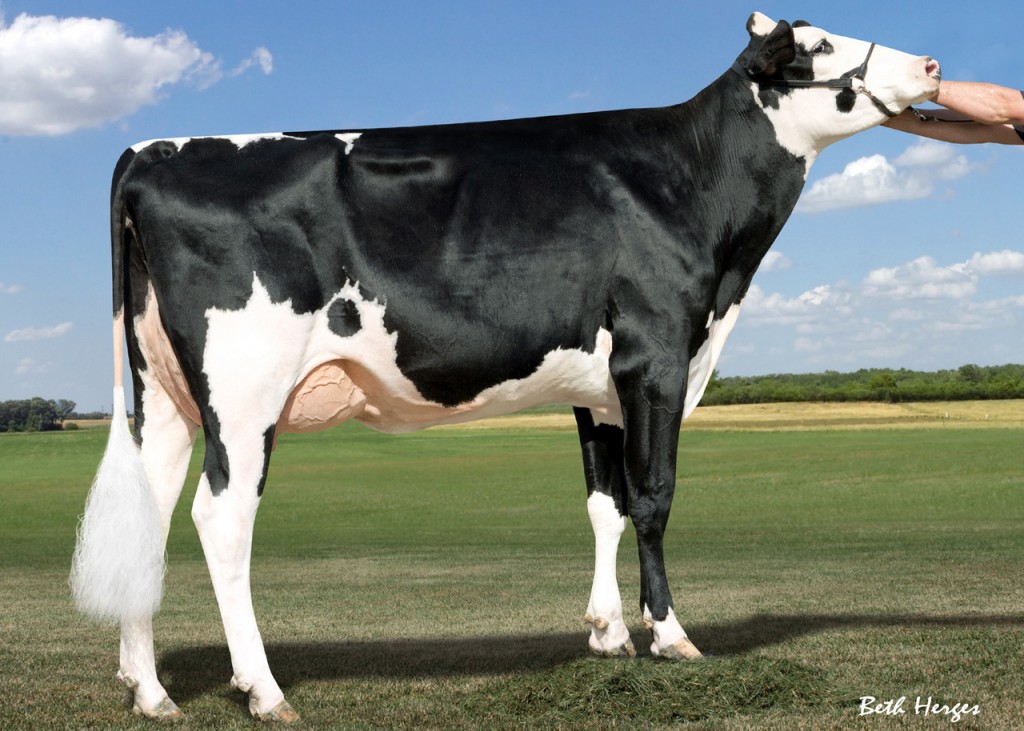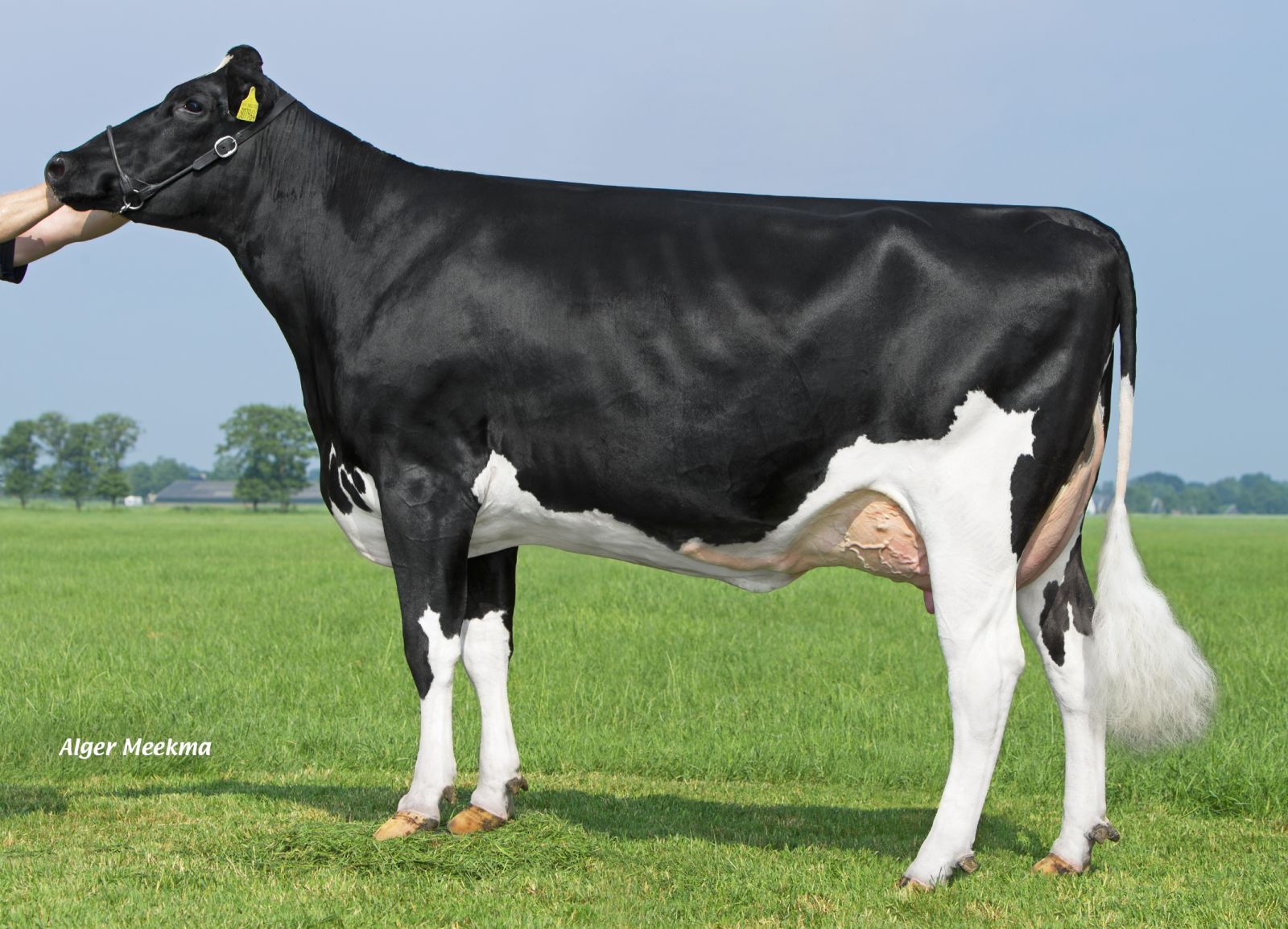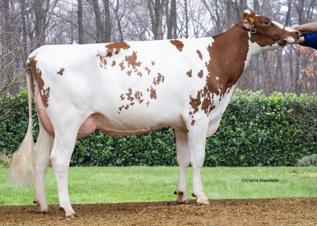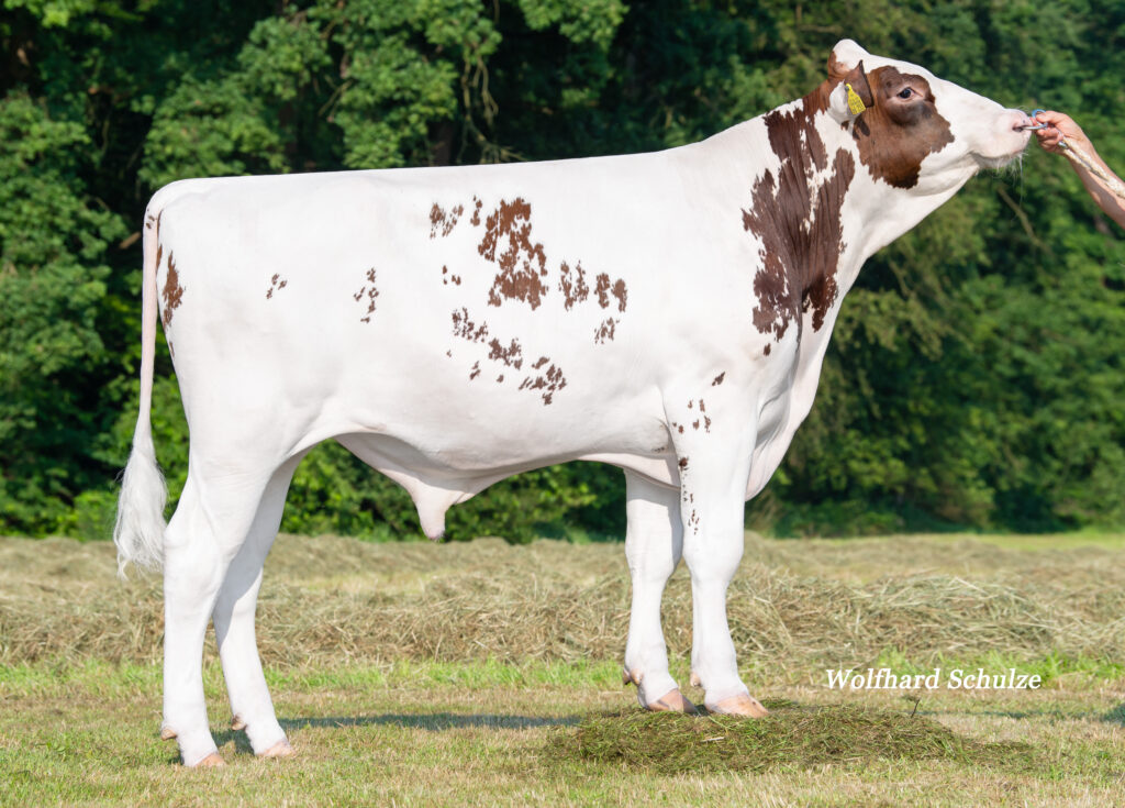 Mega P Red is one of the popular Polled and Red&White sires in Germany and the Netherlands this moment! Mega P Red has it all, his father is in the top 5 with Red&White RZG Interbull Genomic bulls, he goes back on KHW Goldwyn Aiko *RC EX-91-USA and has a very complete profile! This polled and R&W Member PP son has as 3rd dam Willsbro K&L Nugget Aderyn VG-87, bred by Willsbro Holsteins and is straight out of the 3rd generation in a row nominated for worldwide Red Impact Cow by Holstein International: KHW Super Aderyn EX-90-USA DOM. Super Aderyn EX-90-USA her dam, KHW Goldwyn Aiko RC EX-91, was named Global Red Impact Cow in 2015 and is straight out of KHW Goldwyn Aiko *RC EX-91-USA. Mega P Red guarantees in his Dutch index +213 gNVI with +651 Lifetime, +104 Udder Health, +108 Mammary System, +101 Feet&Legs and +107 Total Type! He notes in his German index +152 RZG with +1388kgM, +0.27% Fat, +0.07% Protein, +126 RZE (Type) and +147 RZM.