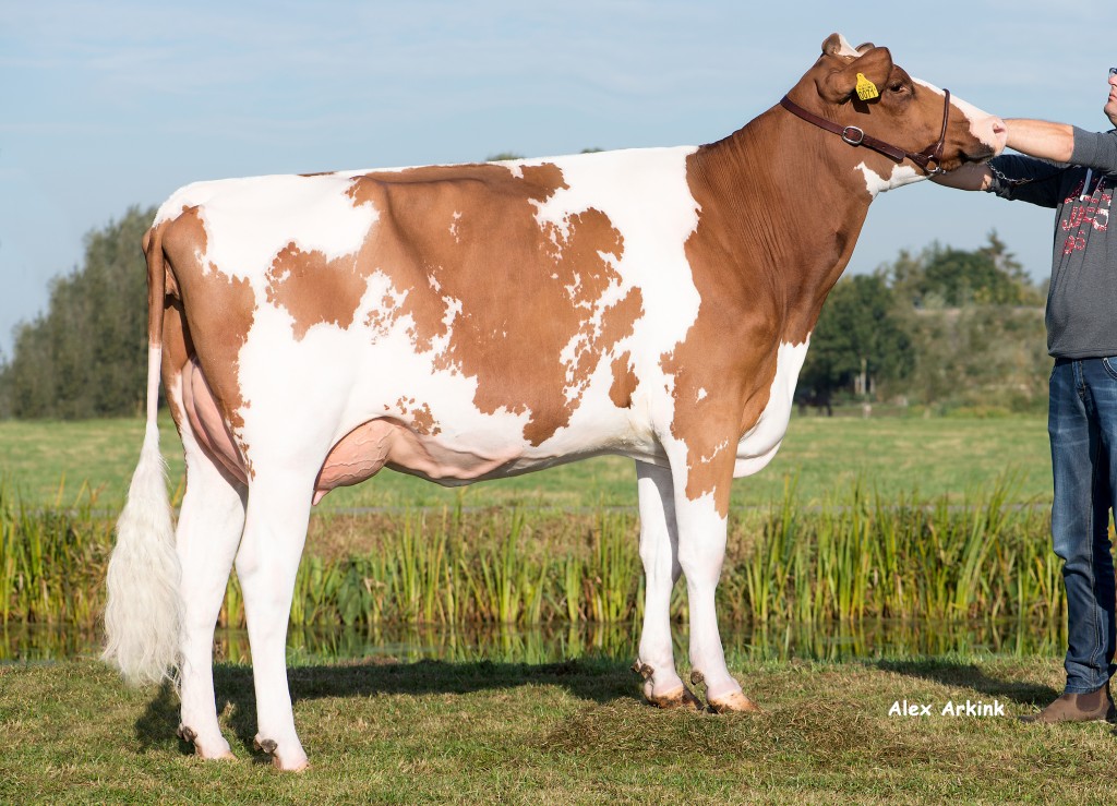 The incredible R&W show toppers at Batouwe Holsteins have increased their scores to phenomal good scores. The 2-Yr Old Champion R&W Hoornaar Show 2019: Batouwe Ks Lilly-PP-Red now scores VG-88-NL with VG-89-MS in her 1st lactation. Her herdmate Share DG Agnieska-Red increases her score fresh with her 2nd calf to VG-89-NL with EX-90 for her feed and legs. The other great R&W cow Batouwe Catharina 3 (s. Apoll-P x Catharina 80-Red s. Camion) now notes VG-87-NL VG-MS in her 1st lactation. With these 3 new scored cows the herd average at Batouwe Holsteins of their R&W cows maintains VG-87,4 with VG-87,4-MS.
