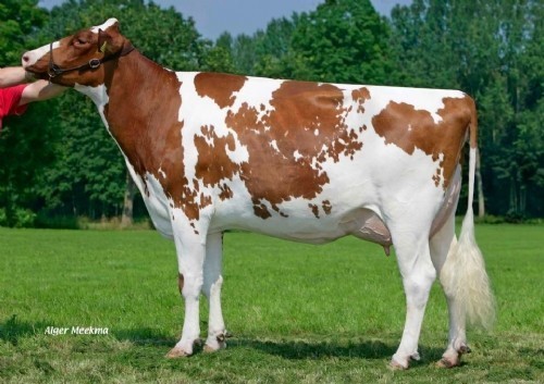 Schreur Holsteins has bred the new Red & White topper in Germany with Schreur Caralie Red *PO (s. Zambrano), with gRZG +147 is she the #1 Zambrano dtr and the #4 R&W gRZG Heifer in Germany! Her dam Verhages Bos Candlelight Red P VG-86 2yr. has RZG +137 and is the #1 Lawn Boy dtr and also the #1 Polled 2yr. Old in Germany!