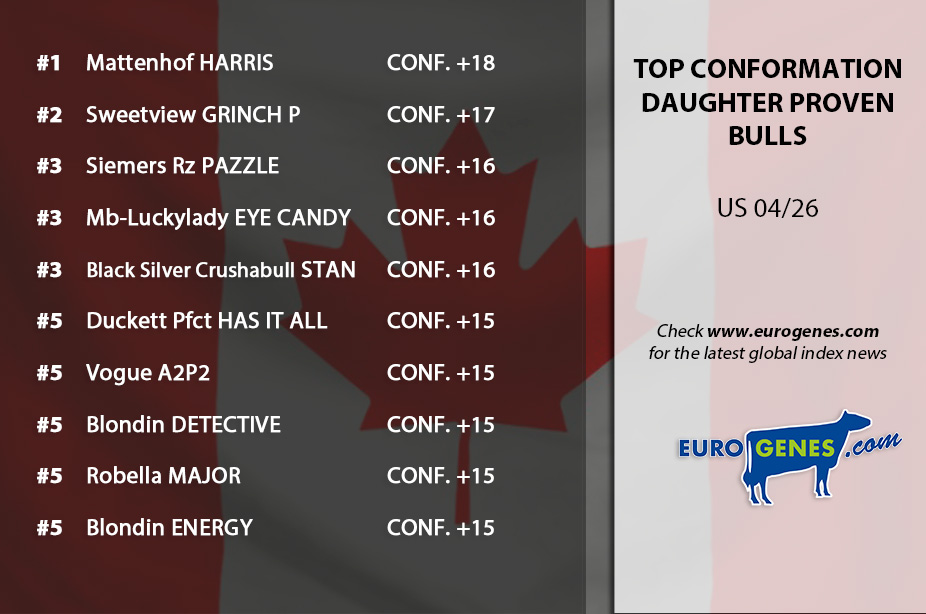 A new charttopper in the gLPI ranking with genomic bulls with Siemers SSI Rosmry Tonks at +4179 gLPI. In second follows Welcome Gustavsson at +4064 gLPI and making the top 3 complete with TTM Howland Golden P at +4063 gLPI. A great debut for DV DG Rammstein-Red! He came in as the Nr. 3 gLPI Mace daughter proven sire at +3883 gLPI! Charttopper in this ranking is RMD-Dotterer Bolt Action at +3927 gLPI!