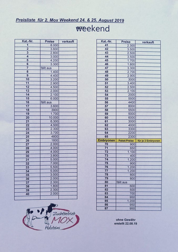 We received snapshots of the heifers selling in the 2. MOX-Weekend taking place this weekend (24 - 25 August) @ Mox-Holsteins, Germany. Their is something for everybody with heifers, cows & embryos selling from the very best cow families around the globe. Make sure you don't miss this great event tomorrow.
