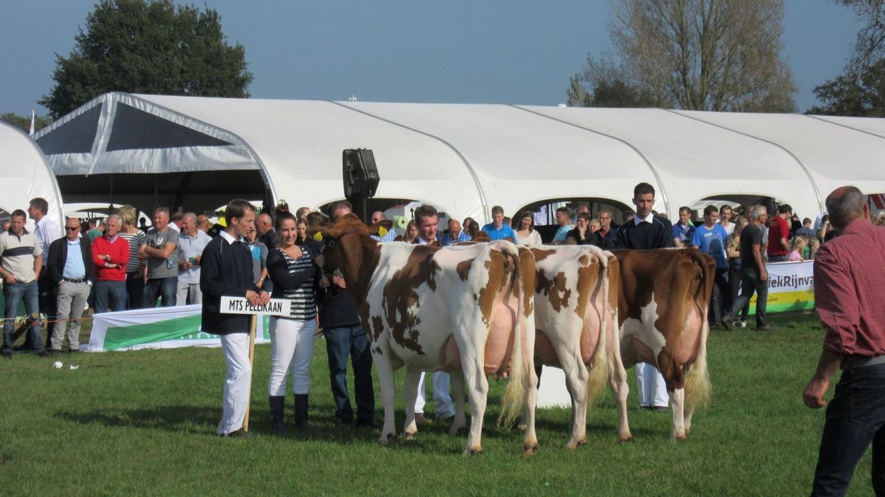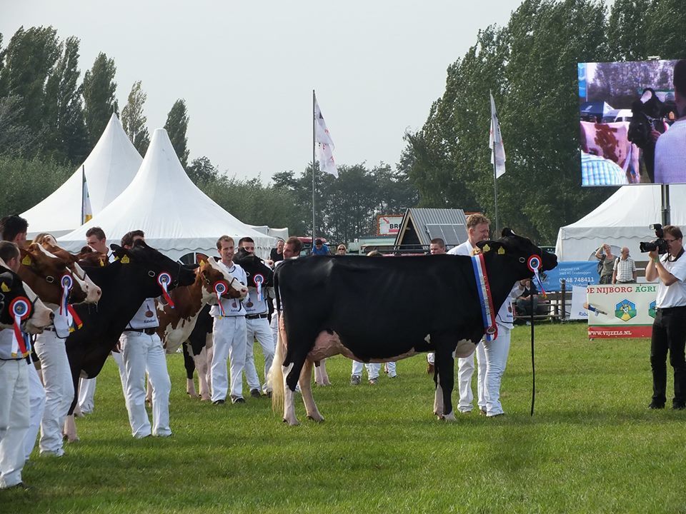 2014 is a great show year for Bons Holsteins which has won so many titles on International, National and Regional shows already this year. The 102nd edition of the County show Hoornaar last Saturday won by the reigning National Champion, Bons-Holsteins Koba 191! Maternal sister Ella 175 won the Res. Int. Champion and Ella 158 (s. Mailing) won the Sr. Championship & Res. Grand Champion B&W. Also in the R&W show Bons won a title, Talent dtr Aaltje 94 won the Senior Class & Grand Champion R&W.
