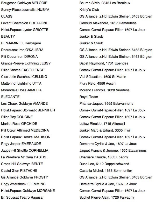 Guest country Switzerland belongs to the most favorite countries for the prices next week during the European Championship in Fribourg! Big names like Ptitcoeur Iron Dirona, Decrausaz Iron O'Kalibra, Ptitcoeur Affirmed Medecina, DG Bolton Class and more are in the selection of the Swiss Team. Click further for the complete selection.