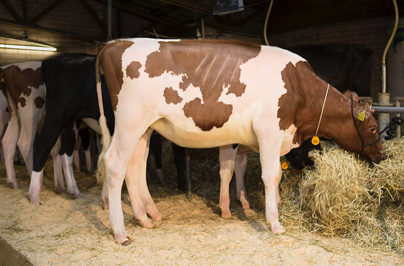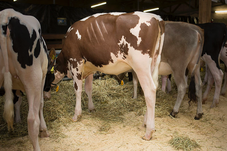 Great R&W genetics has been added to the barn of Bouw Holsteins in Putten, the breeder of great bulls like Finder, Snowfever and others has added some skyhigh RC & R&W donors in their herd. For example N-Ivogen Donna *RC, she believed to be the #1 Mega-Watt daughter for RZG (RZG +155) with very high components (+0.33% Fat and +0.21% Protein), she is out of the Holbra branch of the Golden-Oaks Mark Prudence EX-95 cow family. From the same family we find Oosterbrook Lucky Danick-Red P – a Polled & R&W Lucky PP daughter with gNVI +260 / RZG +151. A new addition from Germany is Kalibra SX 5631-Red – RZG +152 / gNVI +290 Styx x Battlecry from the Wilder Kanu cow family.