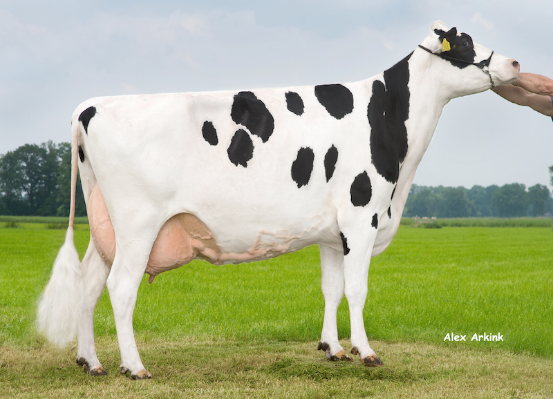 The Dutch branch of the Golden-Oaks Mark Prudence EX-95-USA 5E GMD DOM is one with a huge capacity of Dairy strength & huge components. A great example are the Holbra Malon's! Holbra Malon VG-87-NL produced > 4.0 PROTEIN in six lactation with also an average of 11.000 kgM in 305 days. She is the dam to the fancy Balisto dtr Holbra Malon 3 VG-88-NL 2yr. and Balisto son Holbra Bastilo @ KI-Kampen. Malon 3 also got the genes of this family with producing >14.000 kgM with 3.8% Protein in her 2nd lactation. She was one of the highest Balisto daughters of her age in various sytems and has delivered several sons for A.I. For example the Stantons Adorable son Holbra Adori @ KI-Kampen. He provides the genes of the Dutch branch of the Prudence's for your herd.