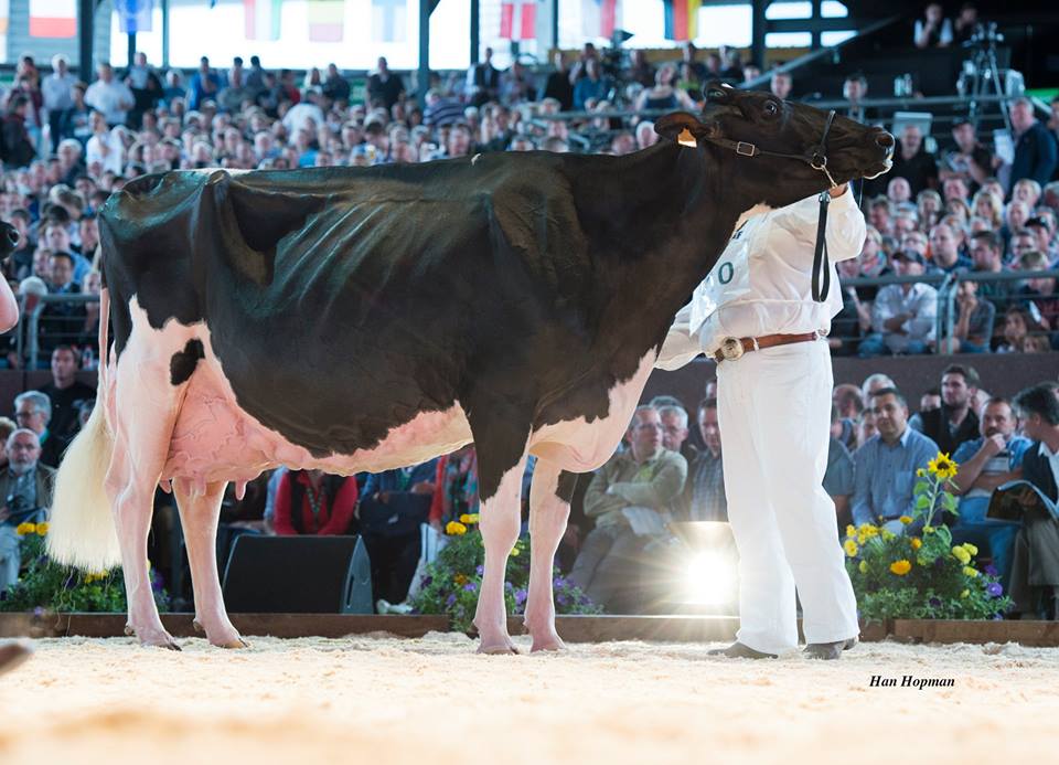 A legend in the European show circuit passed away: Ashlyn-Vray EX-96-ES. This tremendous French Goldwyn daughter was the first EX-96 cow in Spain and won the Res. Grand Champion at the European Show in Colmar 2016, Res. Senior Champion European Show Fribourg 2013, Grand Champion Int. Show Verona Italy '14 and won many more titles. This tremendous cow comes from the same herd as the European Champion 2016: Galys-Vray EX-94-CH bred by Vray Holsteins, France.