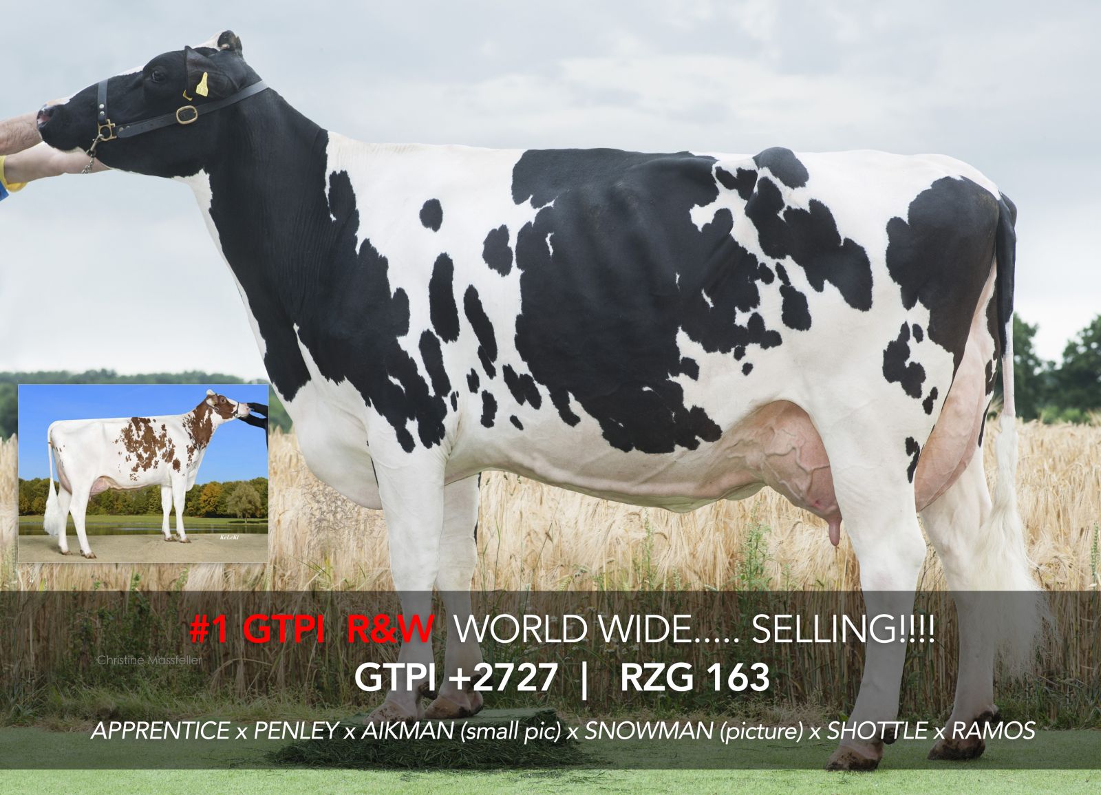The new #1 GTPI R&W heifer in the breed is Wilder Kaiserin-Red, bred by Wilder Holsteins from Germany, she beats the 2nd highest GTPI R&W heifer by more than 100 points and tops the charts with GTPI +2727, that combined with RZG +163! Kaiserin is a daughter of the Kingboy son Apprentice, comes from Penley x Aikman x Snowman x Shottle x Ramos, from the excellent transmitting Wilder Kanu cow family! This absolute global R&W star sells in the HOLLAND MASTERS SALE 2017 on the 30. of June 2017 - www.hmsale.nl