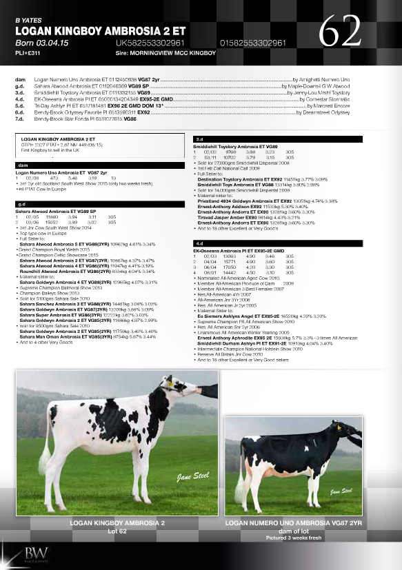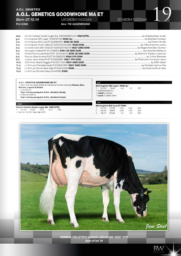 - Lot 29. Dam, Lillyhall Superstition Bria scores now VG-88-UK!