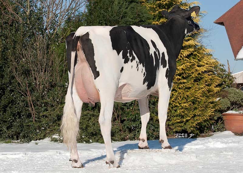 The top donor cows at Vliek Holsteins, RR Gold-N-Oaks Andrea and DKR Iota Lyota are scored this week. RR Gold-N-Oaks Andrea is a highly productive Freddie dtr from the American Gold-N-Oaks Ramos Arabell VG-88-USA, she scored VG-85 with a VG-87 udder. DKR Iota Lyota is only 2 weeks fresh and already scored VG-86 with the maximum VG-89 for her udder! She still has a great and very complete American index with GTPI +2174 and +3.17 for PTAT! Her 3rd dam is the American Muranda BWM Larel EX-95-USA, which scored 100 points for the legs!