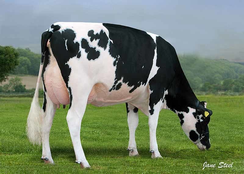 Claire Jones' VG-88-UK second calver Wiltor Million Cream sold for 4600gns. As a heifer she gave 8.487kgM at 3.4% Fat and 4.8% Protein and her first dtr, Wiltor Snowman Creme sold for 3900gns at the Black and White Sale 2012. She has numerous maternal sisters that have sold for up to $100,000. Cream is by Million and out of the EX-92 classified Ralma Goldwyn Carmel.