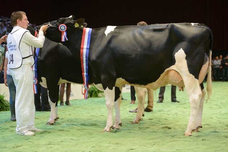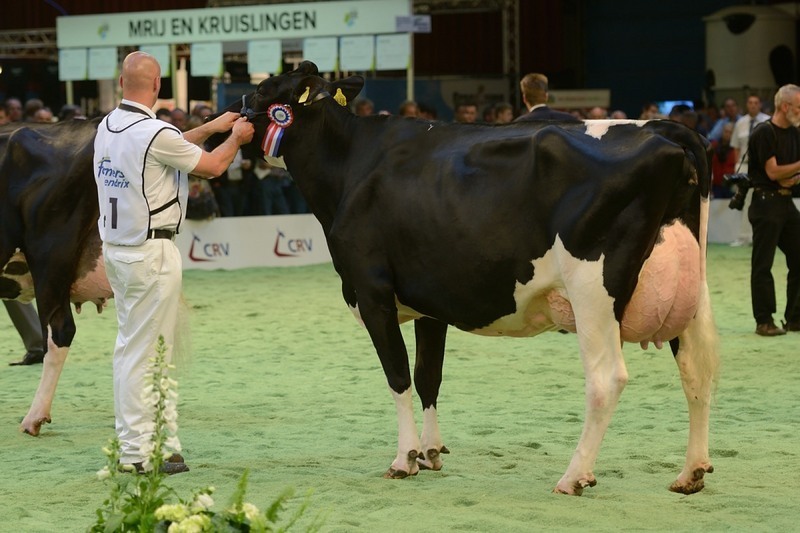 Jos and Harrie Tijhuis from Twente Dairies had a great day at the CRV Show, winning the 2-Yr. Olds Championship title with Twente Dairies Cora 440 (s. Damion)! The Reserve 2-Yr. Old Championship title was for Man-O-Man daughter Monamie bred by the Niermann family from Germany and now owned by Bolleholster Holsteins and R.J. Altenburg! Click further for the complete results of the Black & White Holsteins.