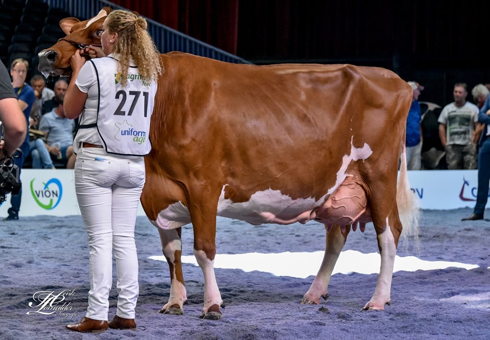 Twente Dairies Jose 2 (s. Big Apple) is crowned as the Grand Champion R&W of the Dutch National NRM Show 2019! She won earlier that day the Senior Championship and was later crowned by judge Danny Verstegen as Grand Champion of the R&W Show. The Res. Senior Champion R&W went to Future Dream H. Rosie (s. Jotan) of Future Dream Holsteins. The Intermediate Champion R&W went to Giessen Cecibell 8 (s. Pitbull *RC). Her daughter Giessen Cecibell 10 (s. Durango *RC) was also presented at the National Show and got the 2nd place in her section. The best 2yr. Old R&W of the show was Barendonk Massia 7273. This early Agent-Red daughter is owned by Barendonk Holsteins and traces back to Apina Mssia 102 EX-90-NL.