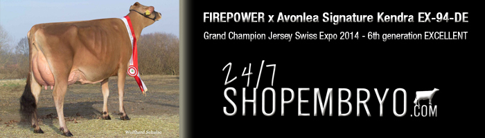 Not often you have the opportunity to buy embryos out of one of the greatest Jersey cows World Wide, now Firework embryos are selling from the reigning Swiss Expo Jersey Grand Champion, Avonlea Siganture Kendra EX-94-DE, the 6th generation EXCELLENT from a fantastic Canadian cow family.