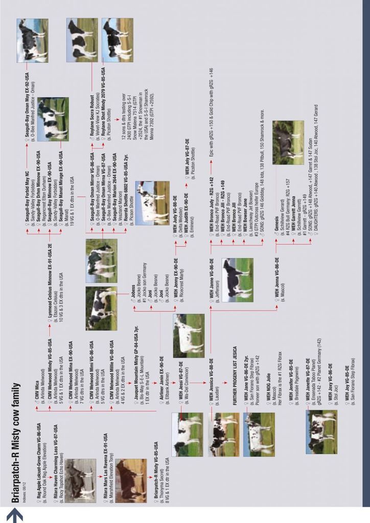 WEH Bronco Jill VG-85-DE 2yr. is the #1 RZG cow in Germany with RZG 151 and is bred by Eurogenes member WEH Holsteins, from the Hintze family in Germany. The German J-family belongs to the strongest transmitting RZG families in the world and goes back on the American Briarpatch-R Misty VG-85-USA 3yr. GMD DOM, a family which also produced Robust. Click further for the article "The American Misty's and German J's".