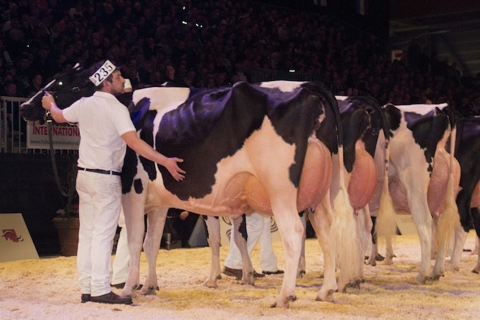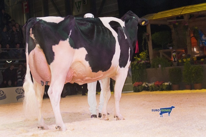 Riverdane Woelchen 8 recently scored the Maximum score of EX-93-UK with EX-94 for her fantastic Mammary System in her 3rd lactation! Woelchen won her class at the European Championships in Fribourg and is owned by I-Cow Holsteins, Riverdane Holsteins and Ponderosa Holsteins.